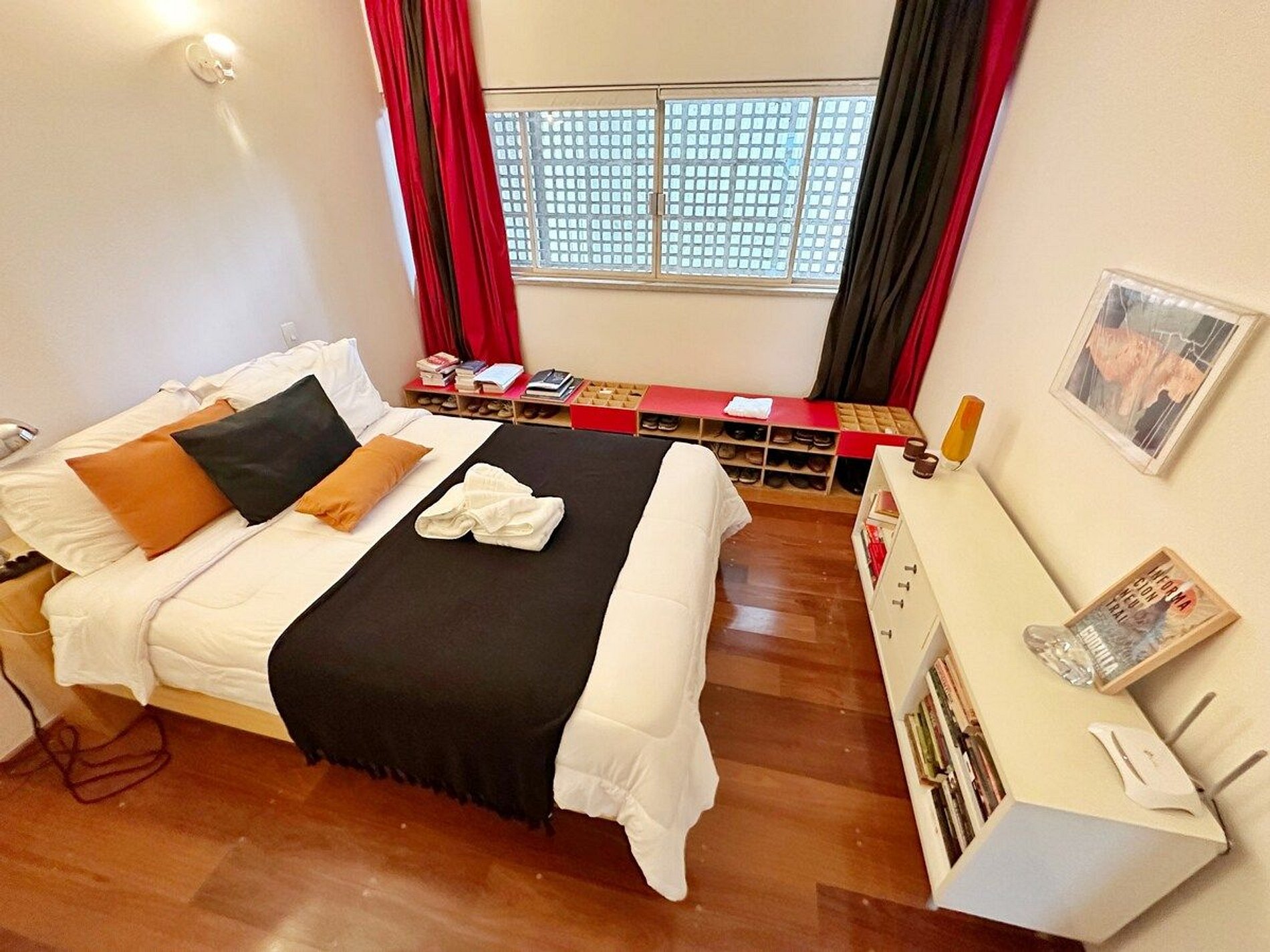 Hospede-se com bastante espaço e conforto no Edifício mais famoso do Brasil, o Copan, obra prima do arquiteto Oscar Niemeyer. Este apartamento de 140 m2 fica no bloco C, e é a segunda maior planta do Edifício. O apartamento é a residência de seu proprietário, por isso está repleto de grandes obras de literatura, muita arte e personalidade. Também por isso, o apartamento só ficará disponível para locação durante as viagens do morador. Explore o centro de São Paulo e conheça esta obra prima.