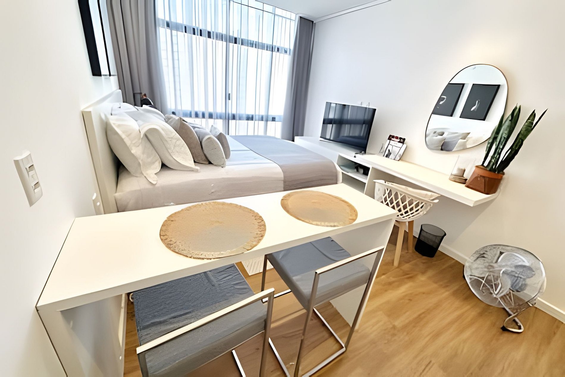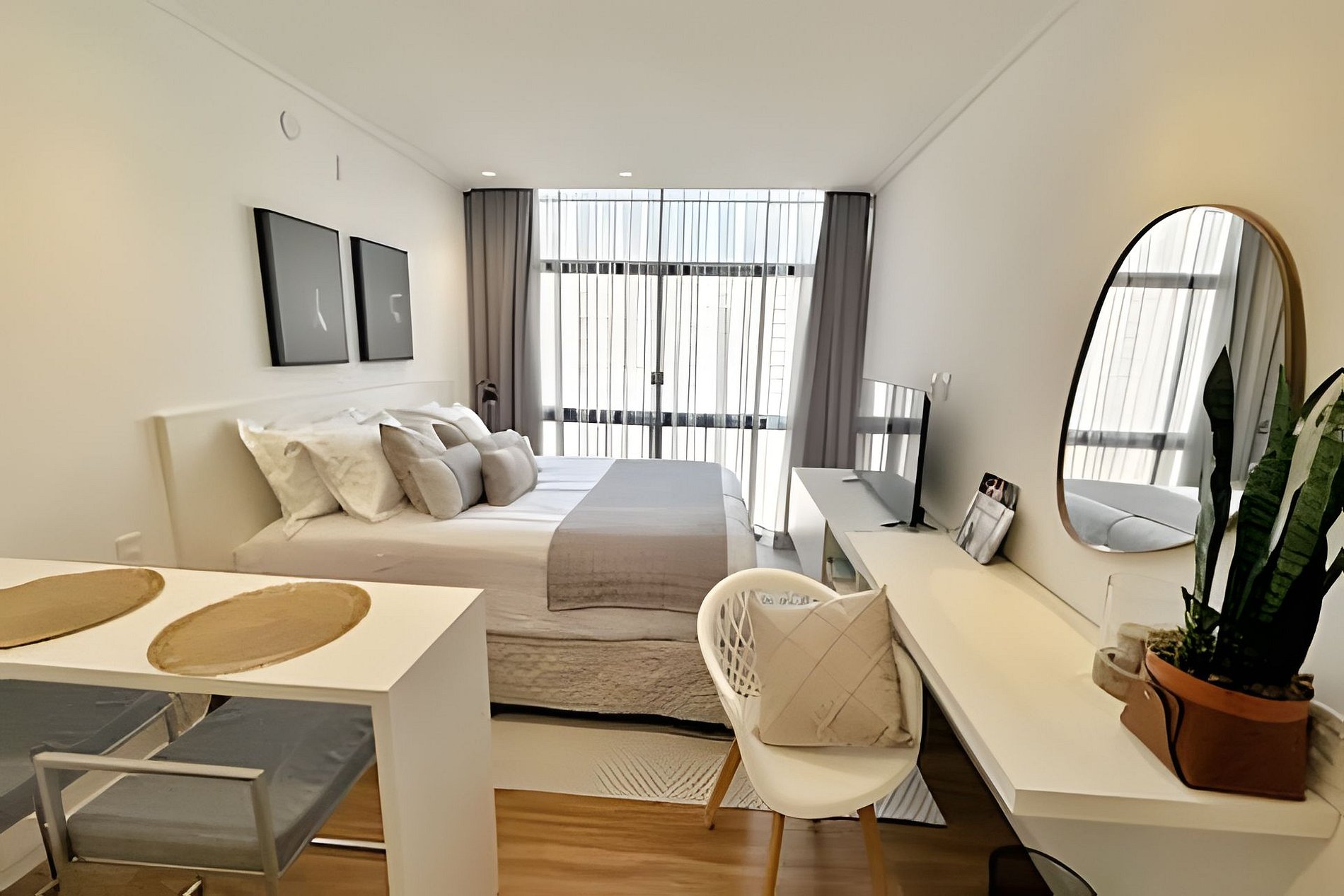 Hospede-se com conforto e segurança no edifício residencial mais famoso do Brasil, o Copan. Esteja perto dos melhores bares e restaurantes da cidade e viva o dia-a-dia de uma verdadeira cidade vertical com mais de cinco mil moradores. A estrutura de serviços do condomínio inclui além de restaurantes, salões de beleza, studios de Pilates, lojas e muito mais.