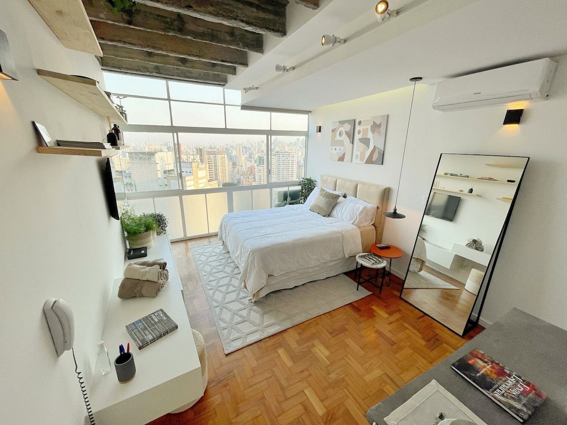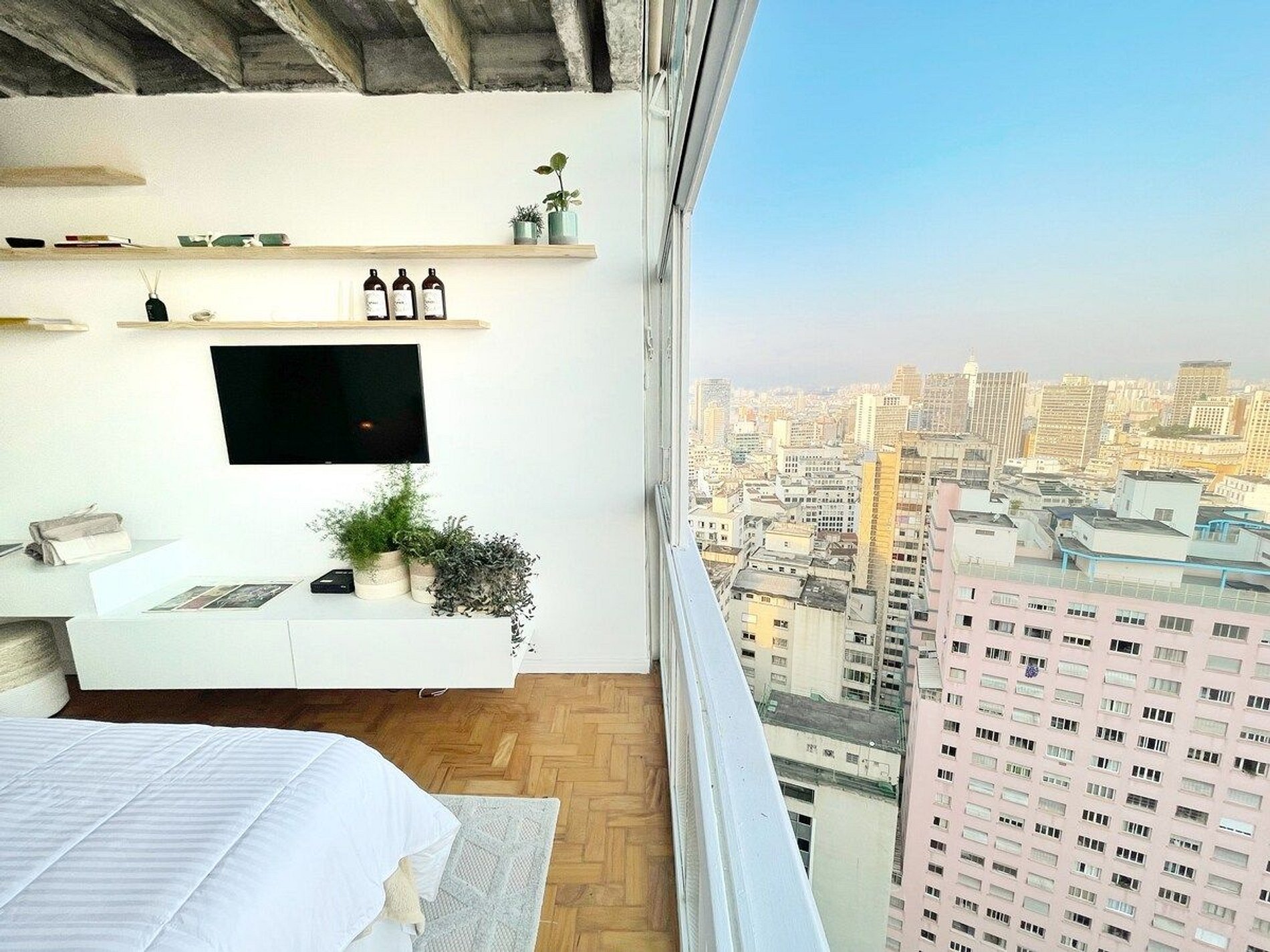 Localização e Mobilidade: corredor de ônibus em frente ao Copan, metrô República (Linhas Vermelha e Amarela) a 200 m, além de restaurantes, padaria, cafeteria, lavanderia, salão, lojas e galeria de arte dentro do prédio.