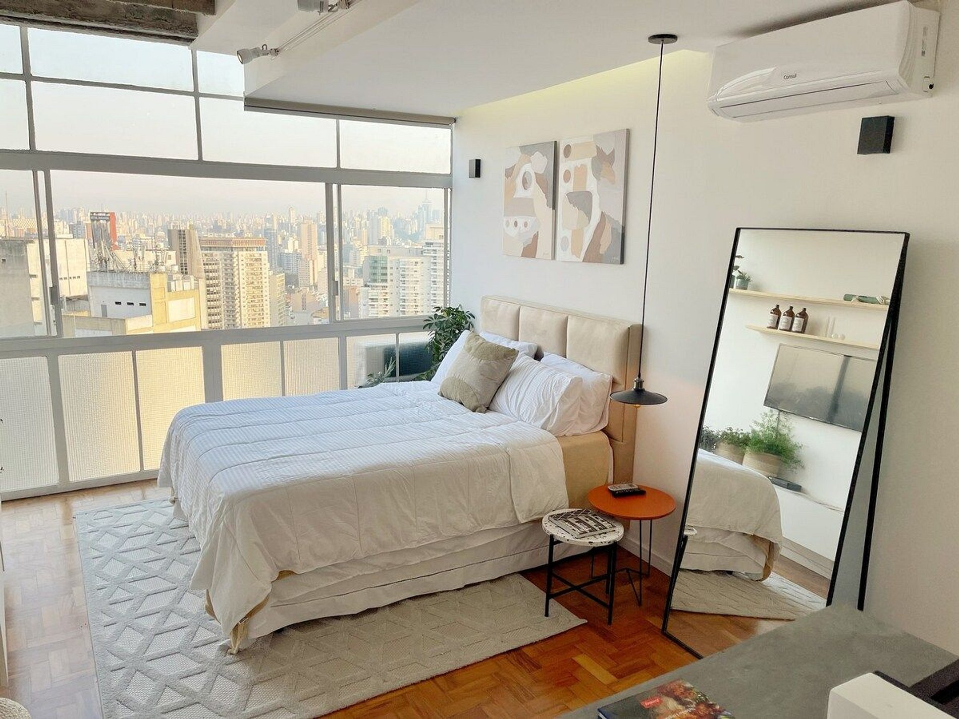 Projeto de @Zairagon Apartamento incrível no 27º andar do edifício mais famoso da cidade, o Copan. Apartamento com vista ampla e desimpedida, com uma cama Queen super confortável e SmarTV. Além disso, o apartamento conta com uma cozinha completa e mesa de jantar/trabalho, para quem quer curtir uma noite especial ou fazer seu Home Office em um lugar diferente. Para os dias mais quentes, o apartamento conta com Ar Condicionado, mas as janelas amplas já permitem uma ótima ventilação natural.