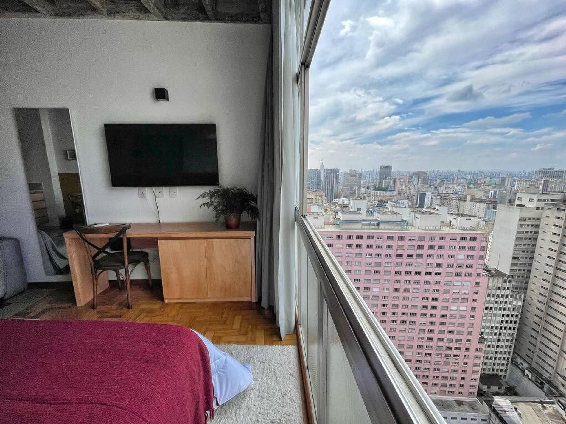 Localização e Mobilidade: corredor de ônibus em frente ao Copan, metrô República (Linhas Vermelha e Amarela) a 200 m, além de restaurantes, padaria, cafeteria, lavanderia, salão, lojas e galeria de arte dentro do prédio.