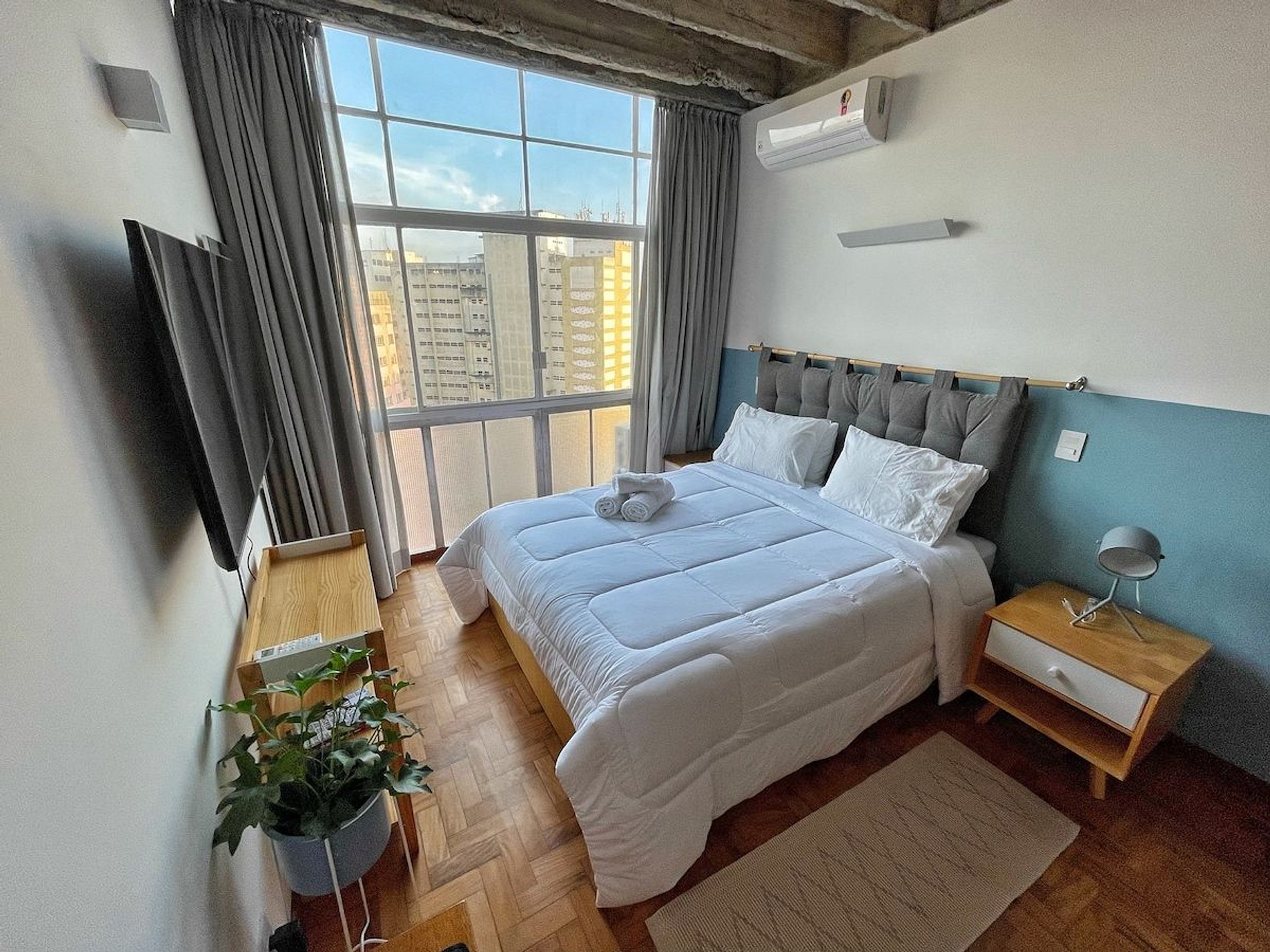 Studio completo para sua estadia mais longa no Copan. O apartamento fica no 21º andar e tem uma vista ótima da cidade. Além disso, conta com ar condicionado para você não sofrer nos dias de calor. Além de uma confortável cama queen, o apartamento também tem máquina de lavar e secar e internet rápida. Hospede-se perto dos principais pontos turísticos de São Paulo, bem como dos melhores restaurantes do Brasil, como Casa do Porco, Cuia e Bar da Dona Onça.
