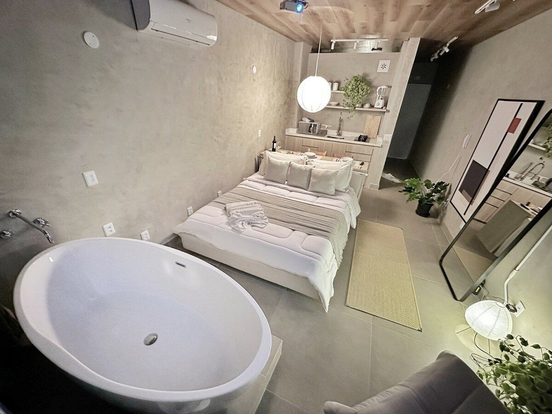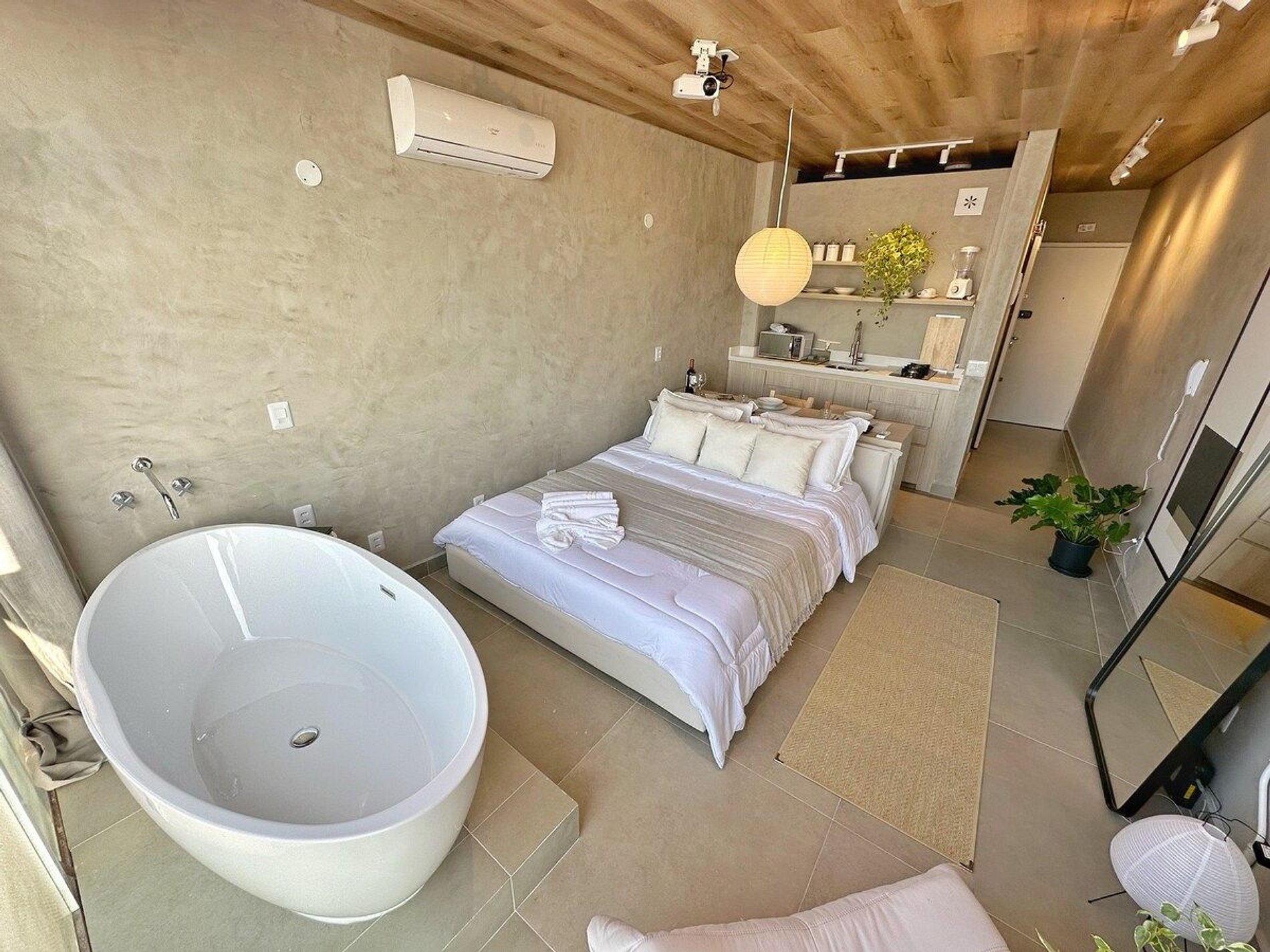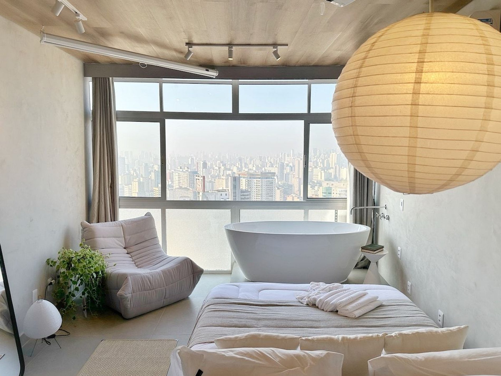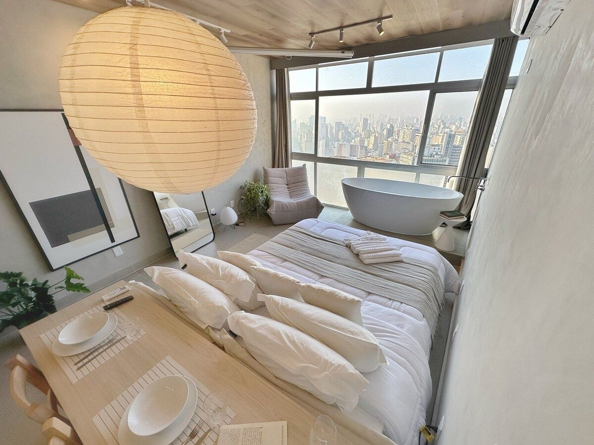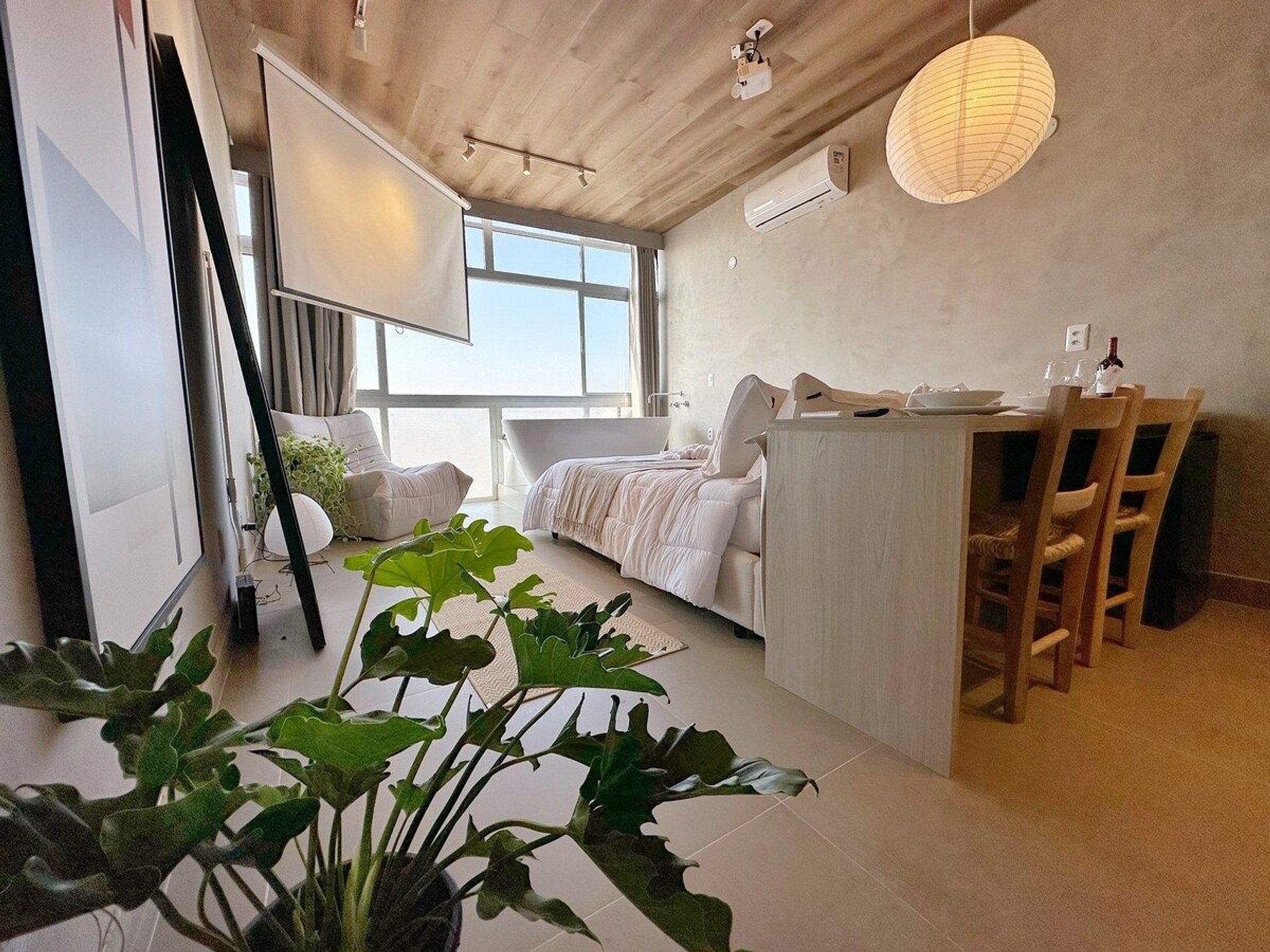 Imagine-se no último andar do edifício mais famoso do Brasil, observando a cidade do alto dentro de uma banheira de imersão. Esta é a experiência que queremos proporcionar a você. E se isso for feito também com um telão de 100" com seus filmes e clipes favoritos? Apartamento confortável com ar condicionado, cozinha completa e um banheiro super espaçoso, além de um guarda roupa para estadias mais longas.