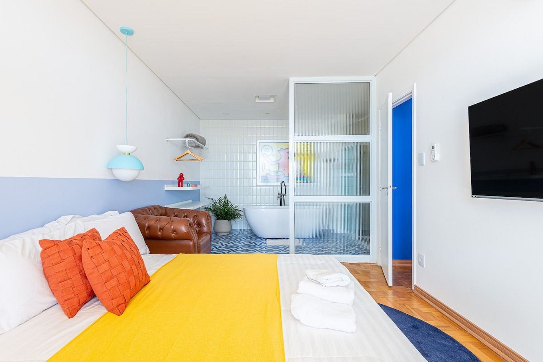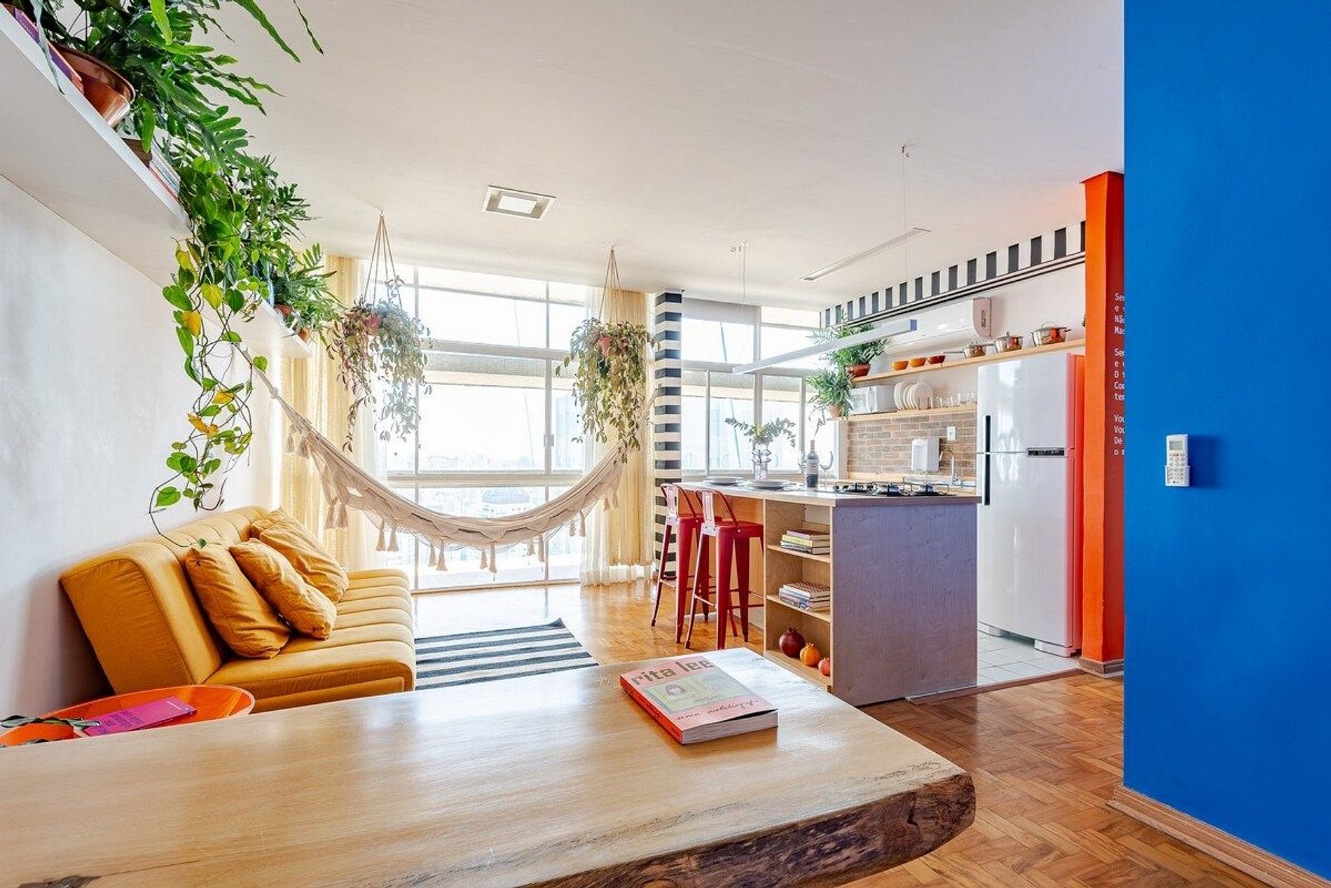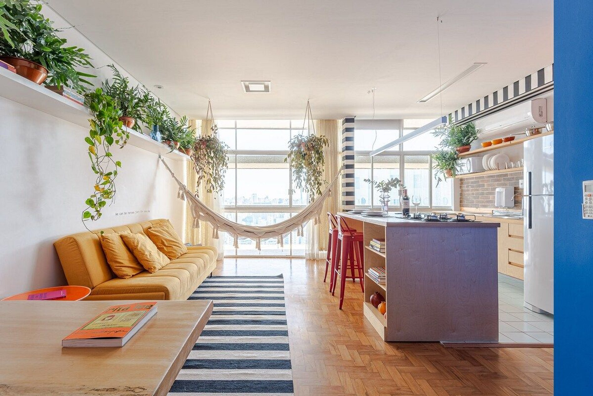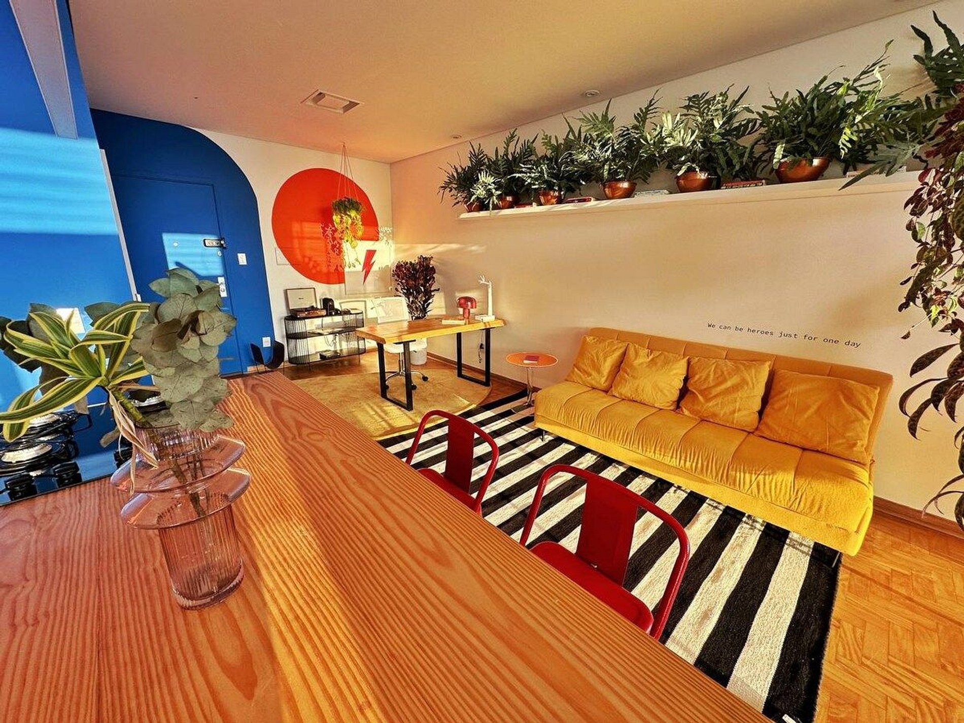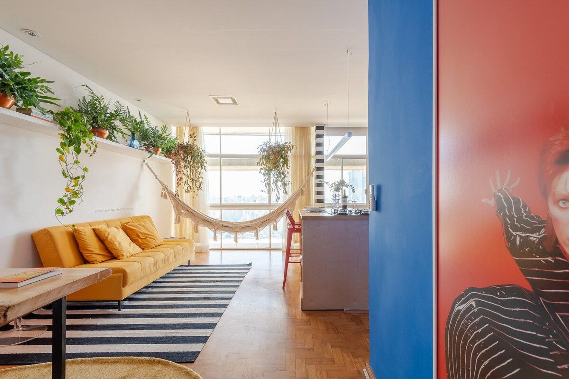 O apartamento é desenhado em homenagem ao astro do rock David Bowie e está localizado no Edifício Copan. Projeto de Yanaina interiores