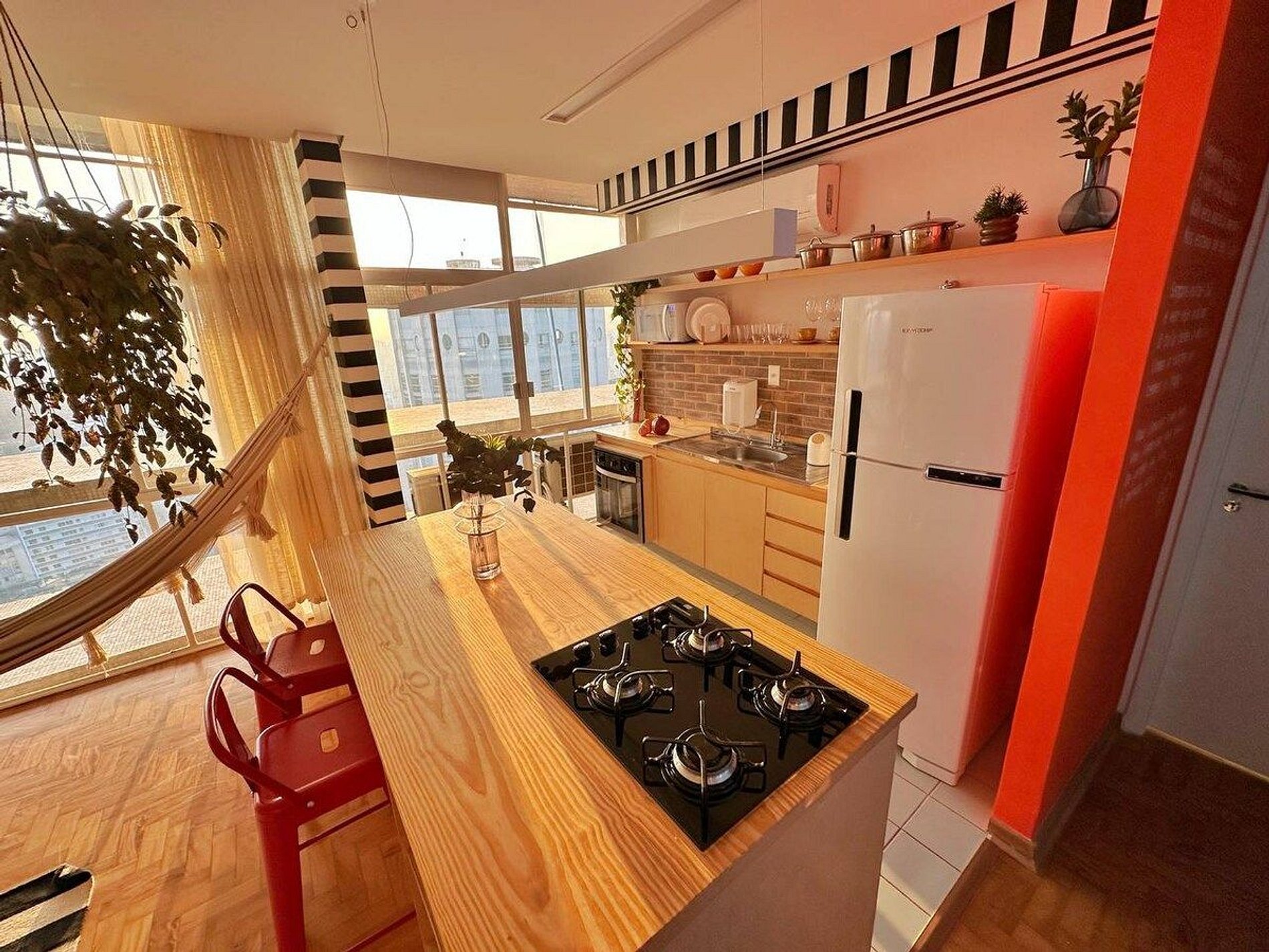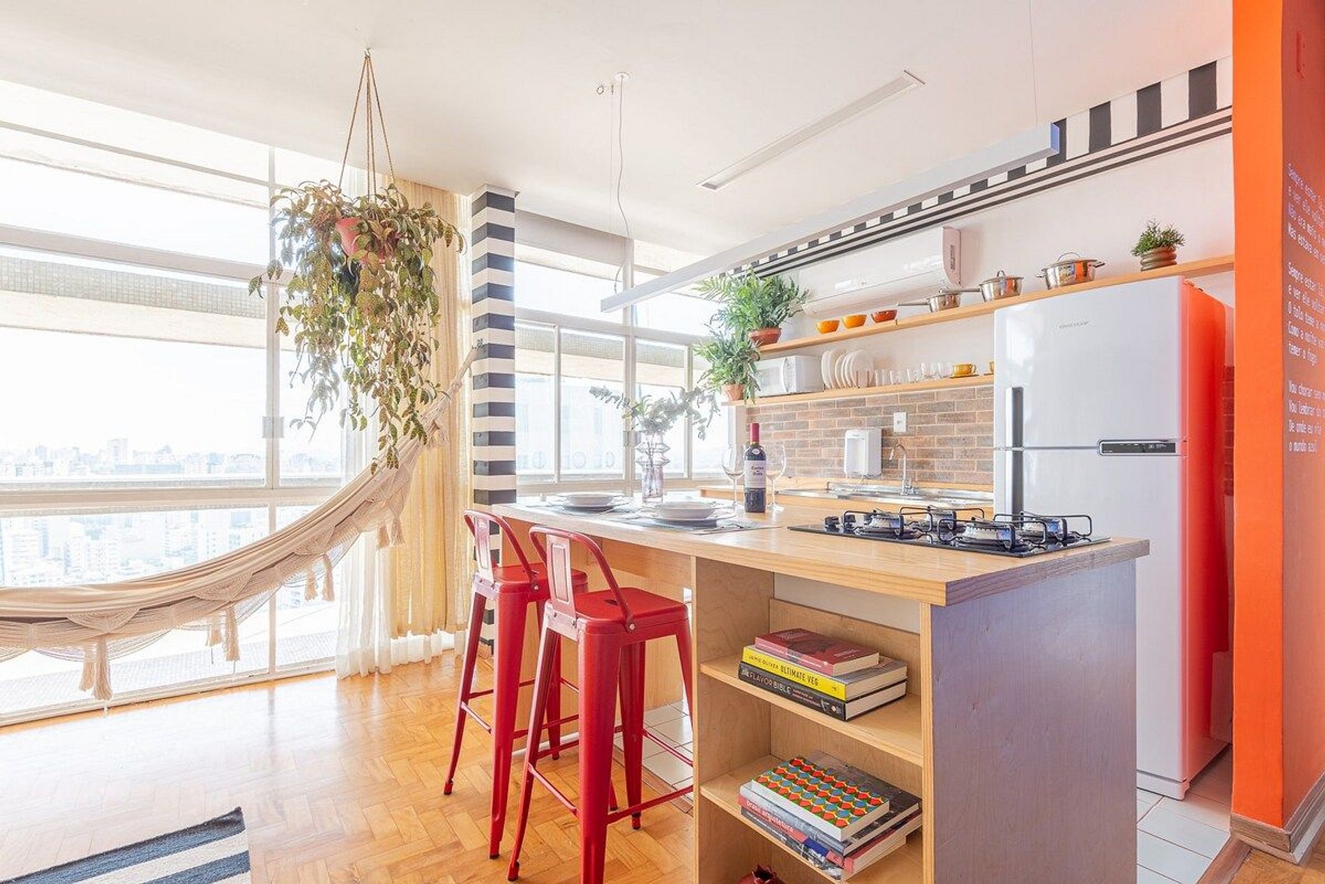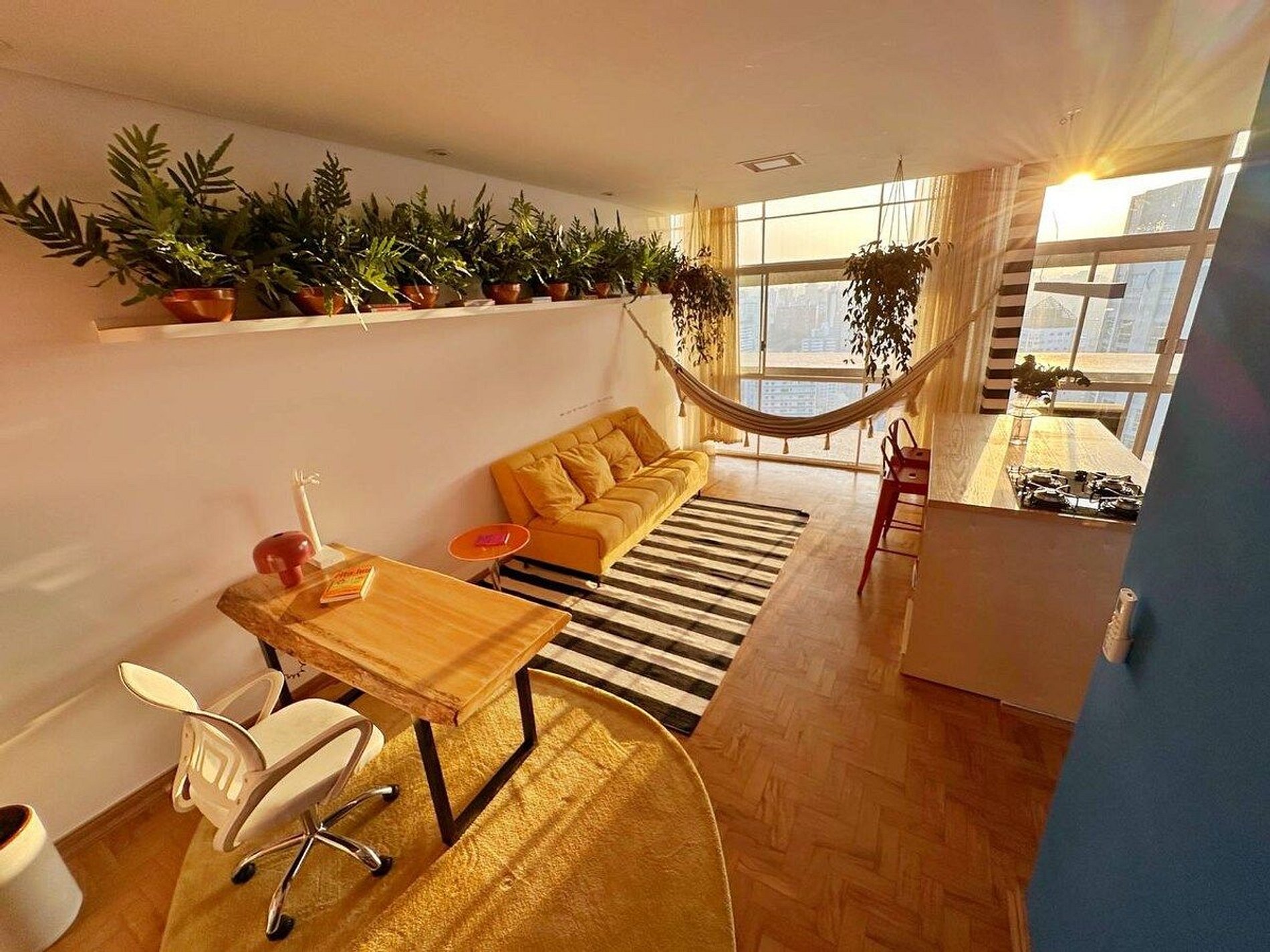 Apartamento de um dormitório incrível no 28º andar do Copan, com um pôr do sol impressionante durante todo o ano. Cama King Size, Ar Condicionado nos dois ambientes, Closet, espaço para trabalho com internet 300MBPs, rede de descanso, cozinha completa e espaçosa, automatizada com sistema Amazon/Alexa. O apartamento mais completo que você pode encontrar no Copan
