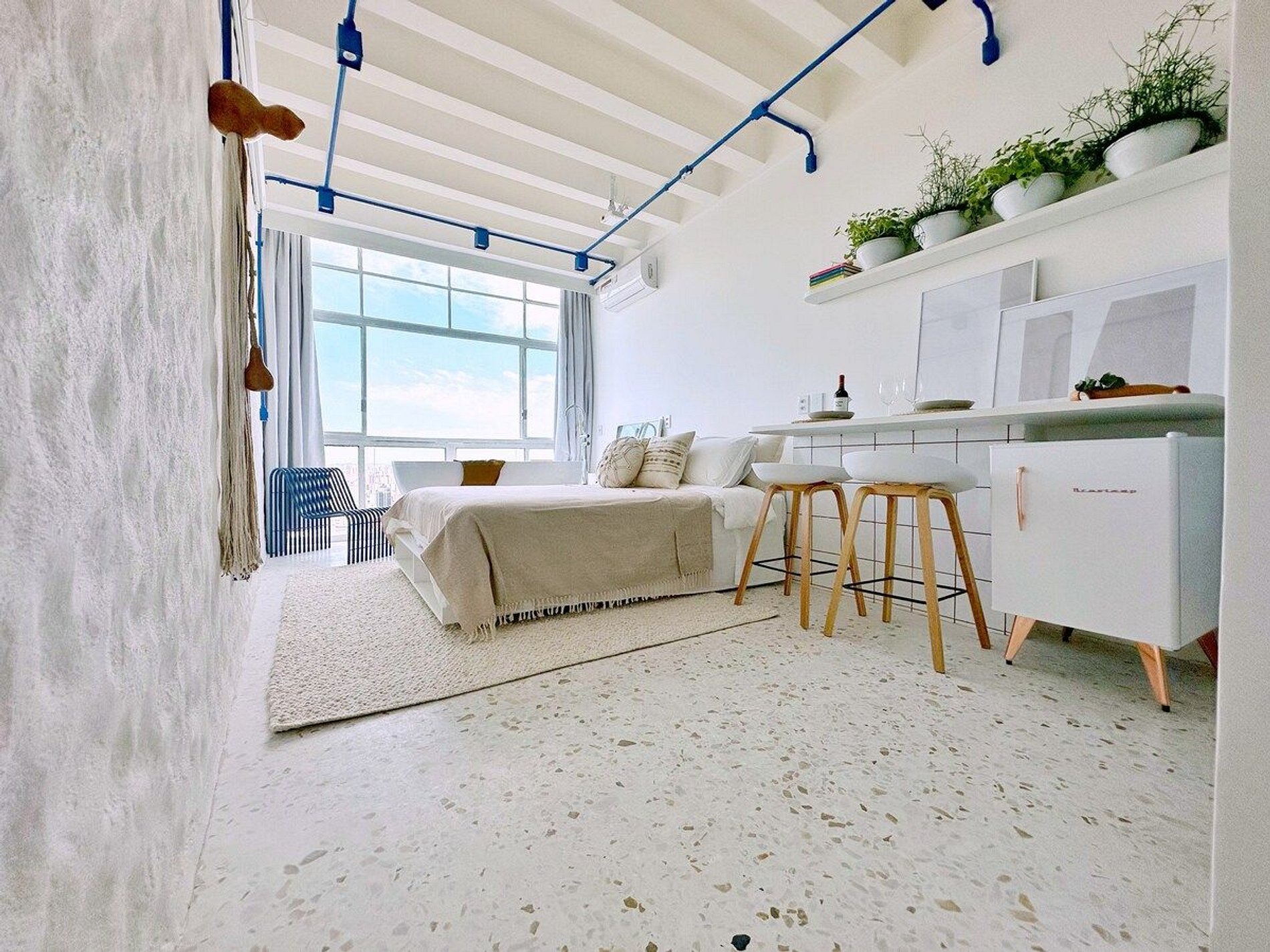 Daydreaming significa sonhar acordado. E é assim que queremos que você se sinta. Tire os sapatos e caminhe nas nuvens. Do alto do 31º andar do Edifício Copan, o prédio mais famoso do Brasil, experimente estar isolado de toda a movimentação do centro de São Paulo, mas perto de todas as suas facilidades. Banheira de imersão. Ar condicionado. Telão de 100". Cozinha básica. Cama Queen Size. Projeto de interiores por @yanainainteriores. Importante: é proibido calçar sapatos.