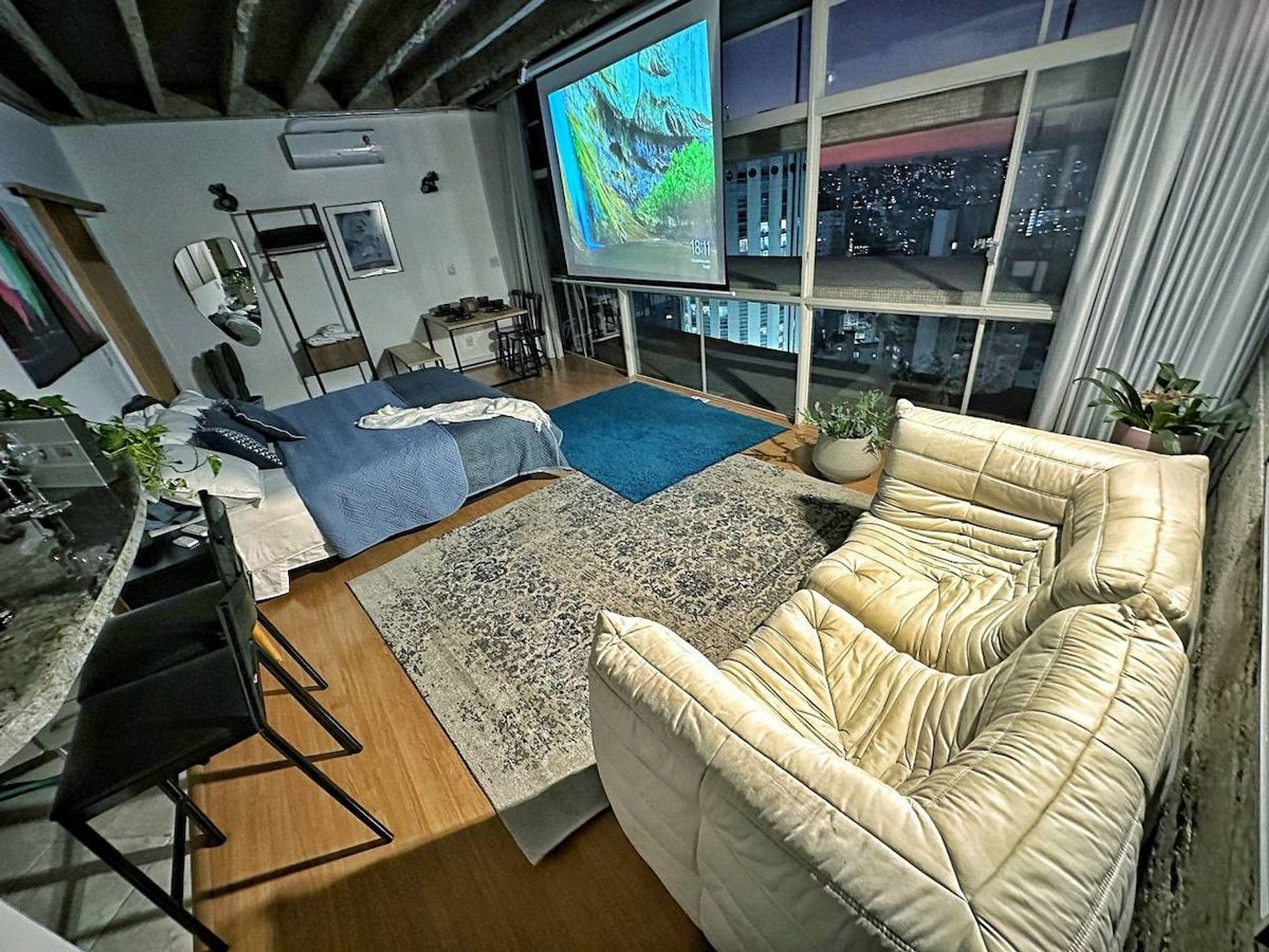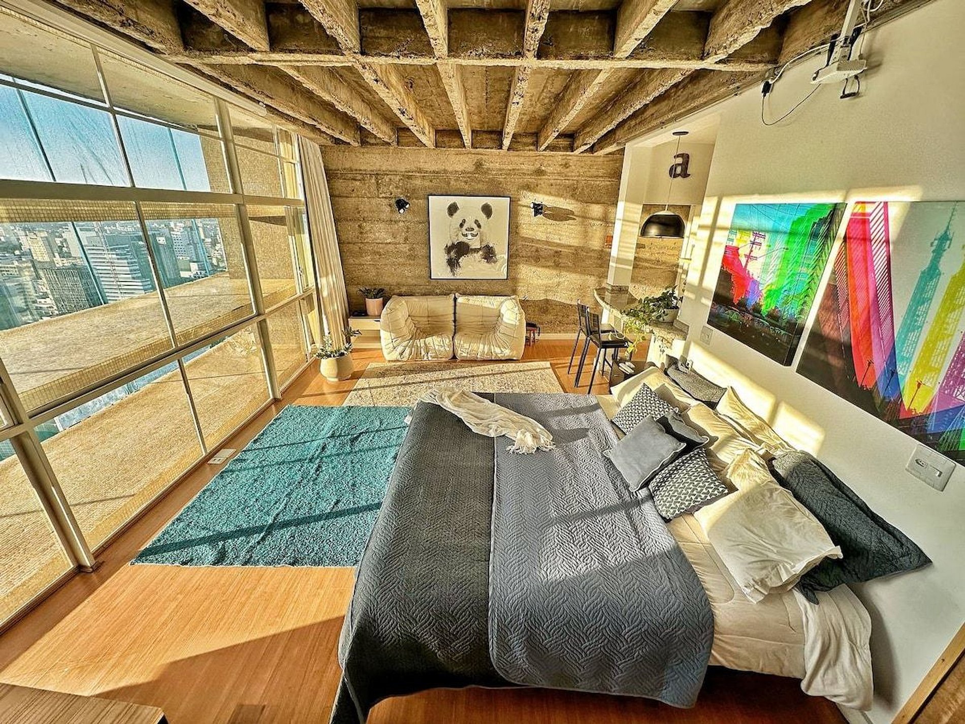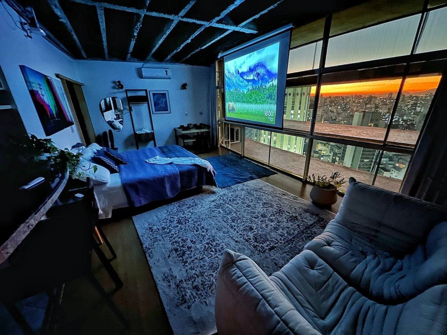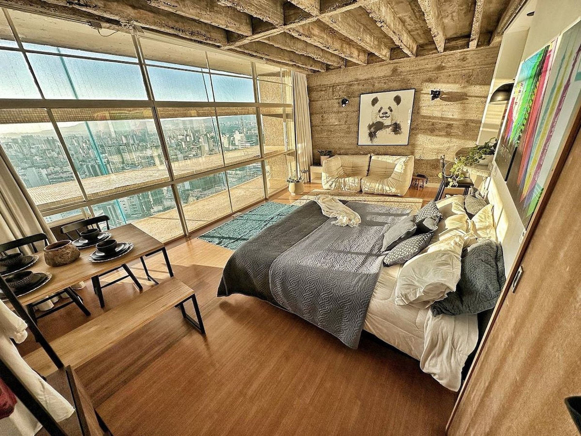 Studio recentemente reformado no Copan. Vista incrível para o por do sol. Telão. Ar condicionado. Banheira. Cama King Size. Um espaço bastante confortável para você conhecer um pouco mais do prédio residencial mais famoso do Brasil.