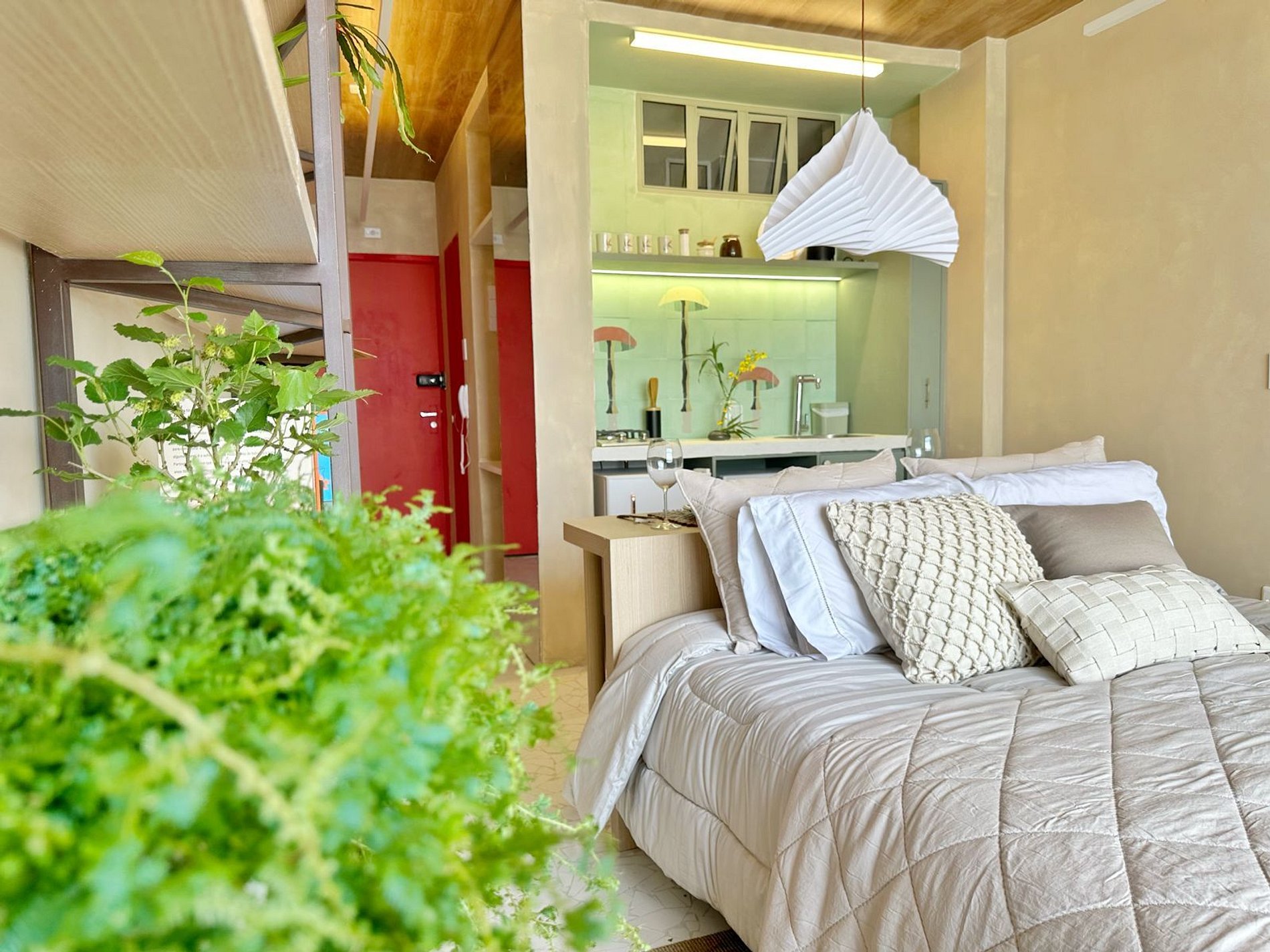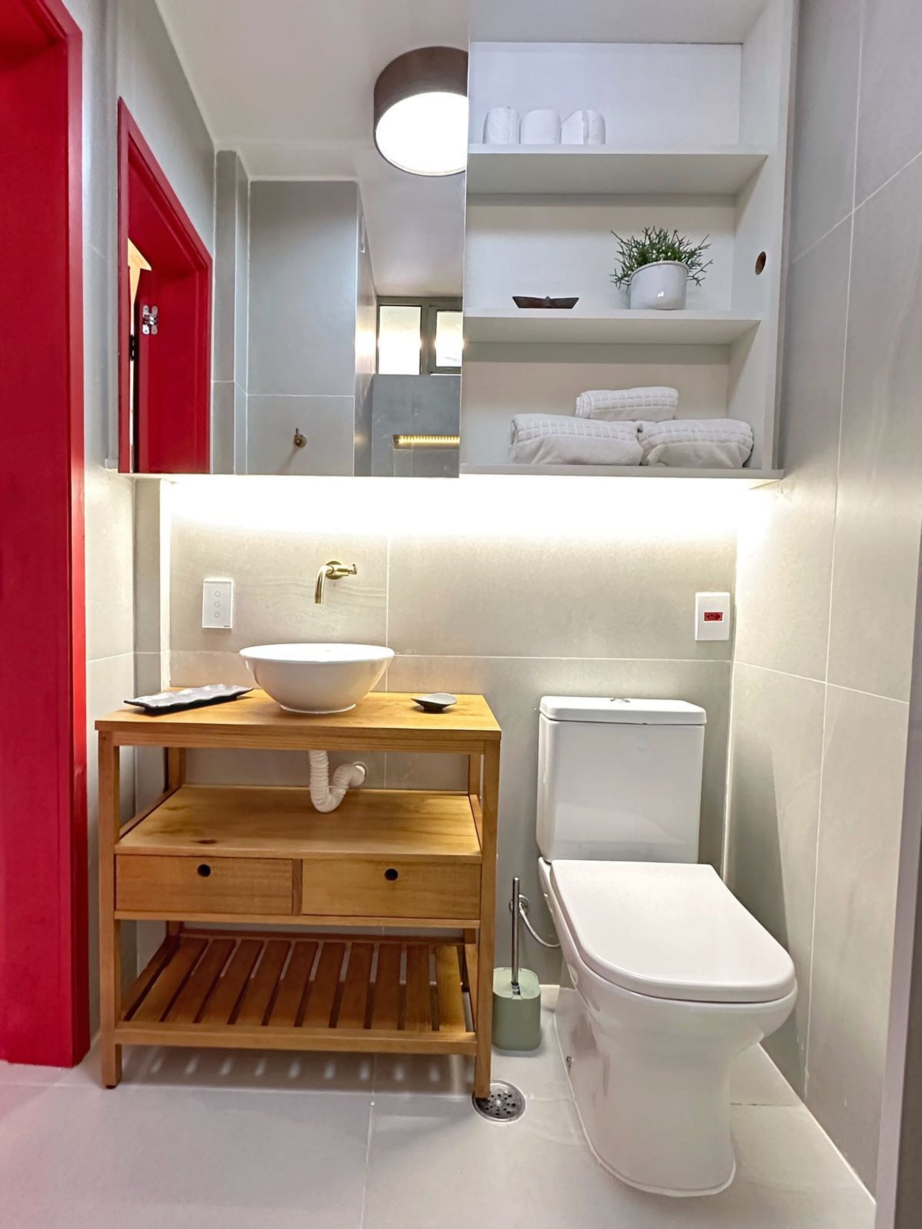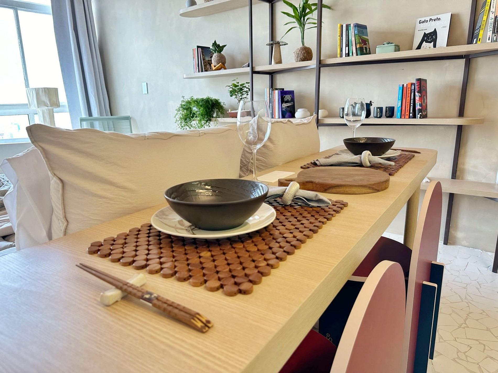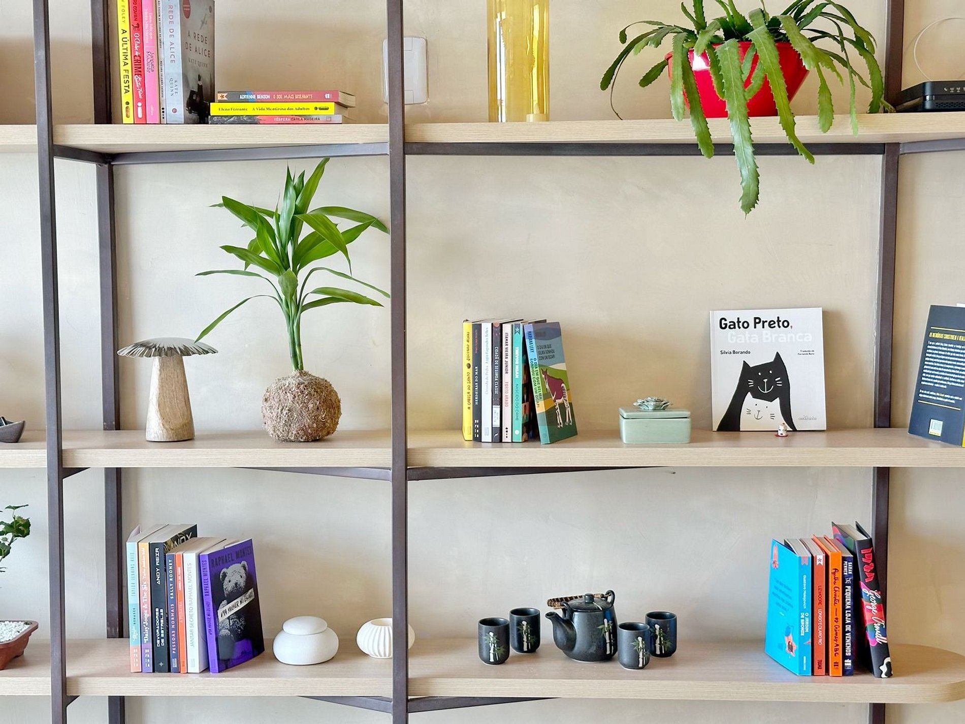 Por @yanainainteriores Este studio foi totalmente reformado em fevereiro de 2024. Trabalhamos para criar histórias de hospedagem. E a história desse Ape é sobre descansar. Um Studio projetado para hospedar livros e pessoas. A Proprietária, uma apaixonada por livros, deixou nele cerca de 50 obras que leu nos últimos 5 anos, todas com uma dedicatória especial que apresenta o livro aos hóspedes, além de alguns importantes trechos marcados. Telão de 100”, banheira e ar condicionado