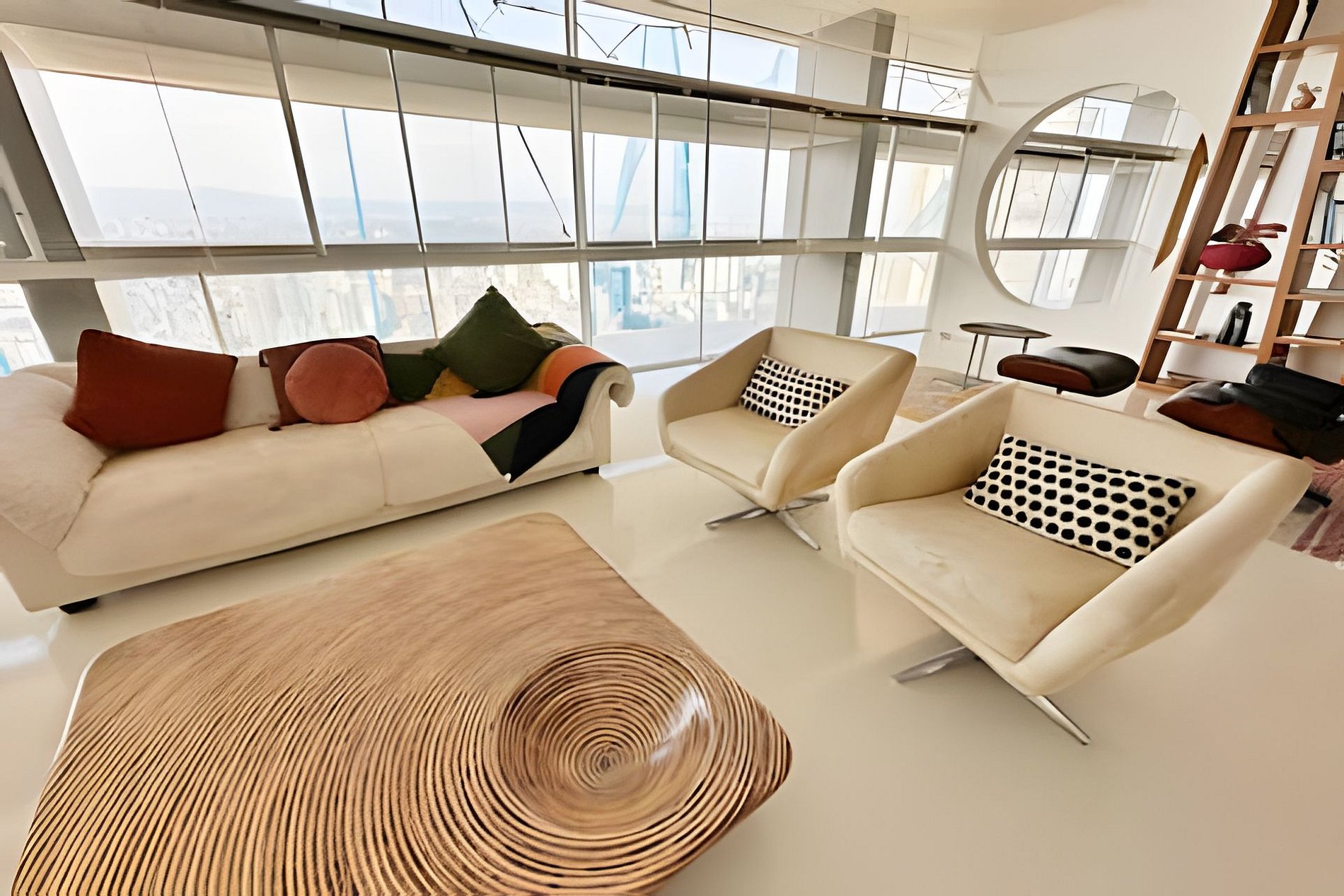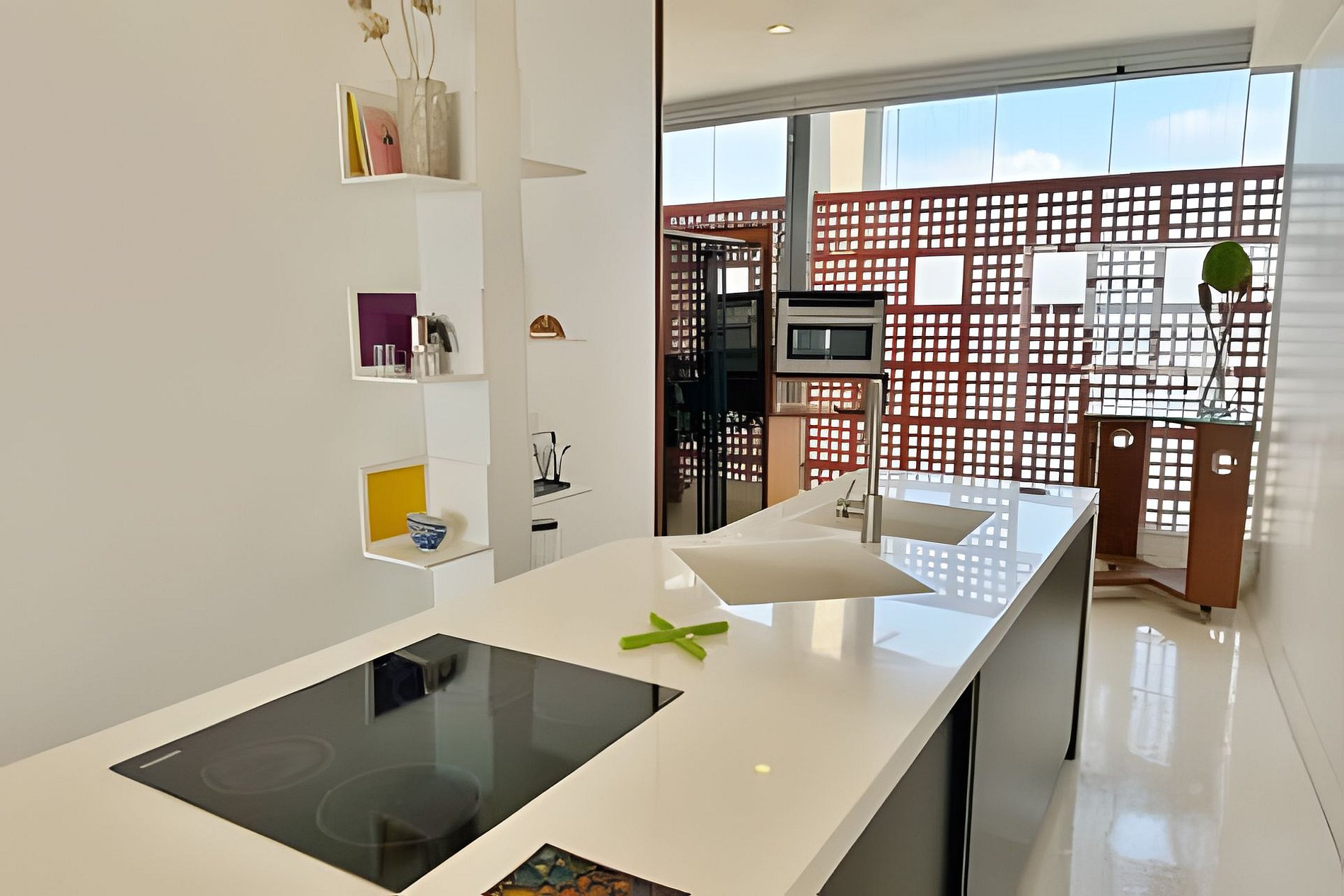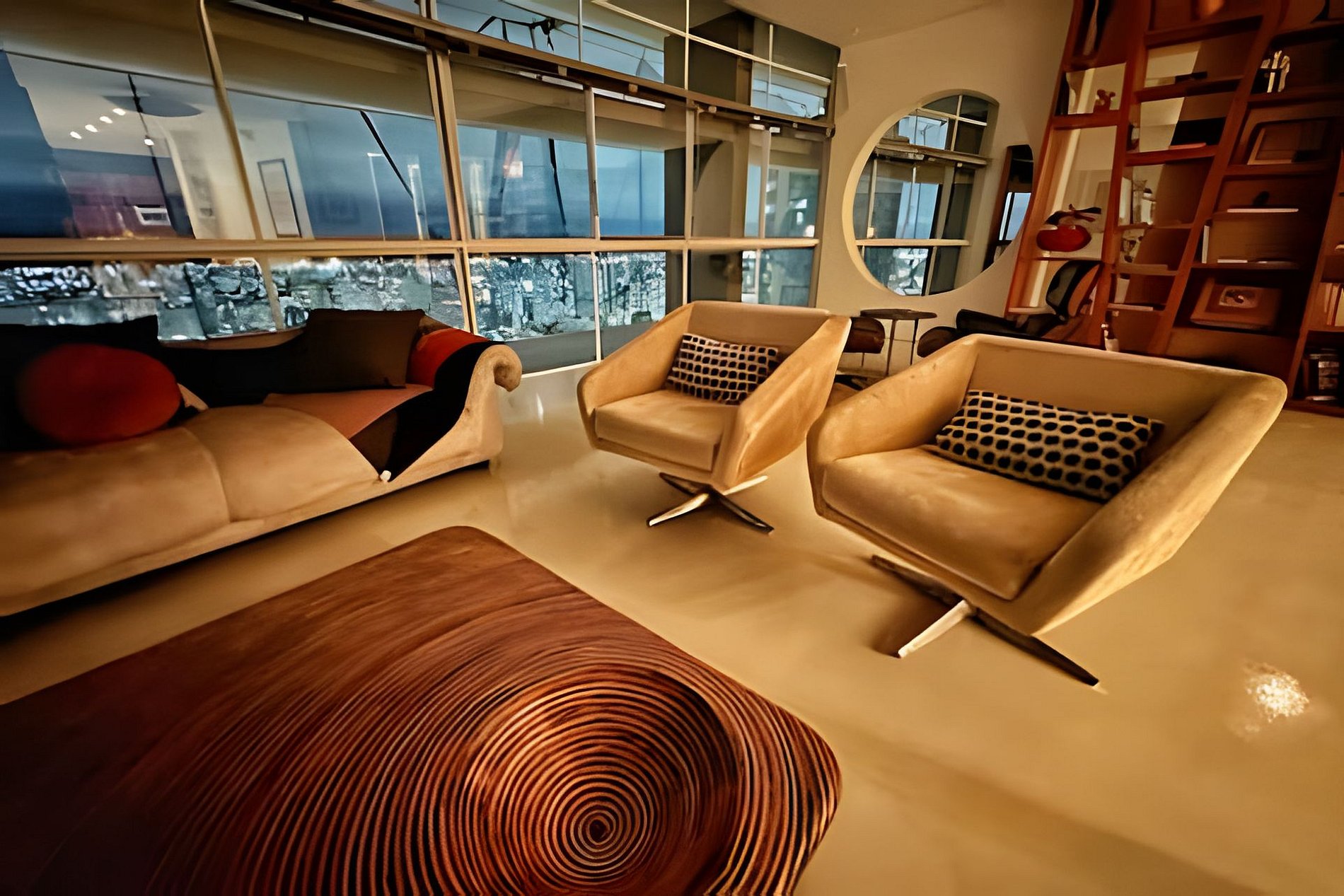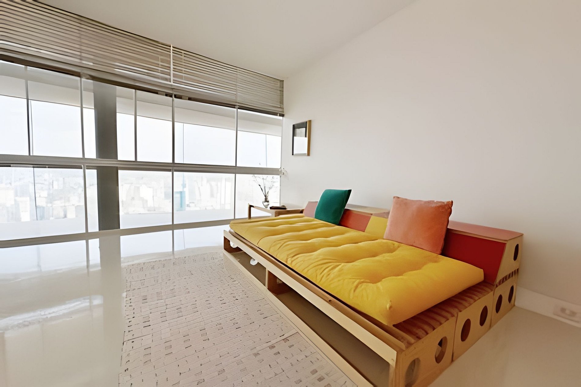 Este projeto do arquiteto alemão Walter Faigle, aluno da lendária Ulm Design School na década de 50, e que foi amigo pessoal dos proprietários, traduz para o ambiente do Copan elementos de sua genialidade. O apartamento, que está no último andar do edifício, traz o piso em revestimento monolítico branco, prolongando o horizonte da cidade para dentro de seus 180 m2. A maior planta do Edifício Copan, que foi redesenhada para dois espaçosos dormitórios e uma grande área de convívio.