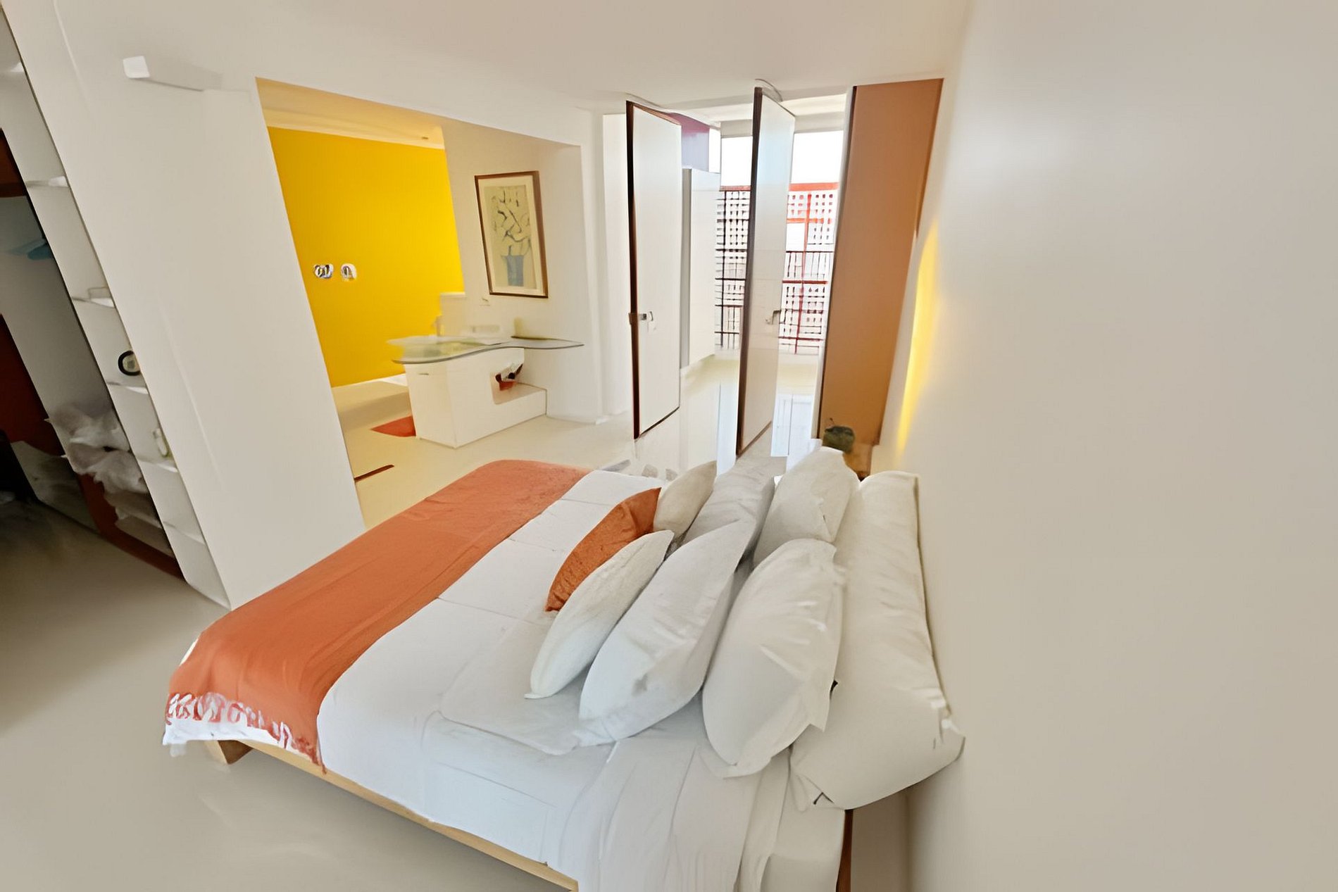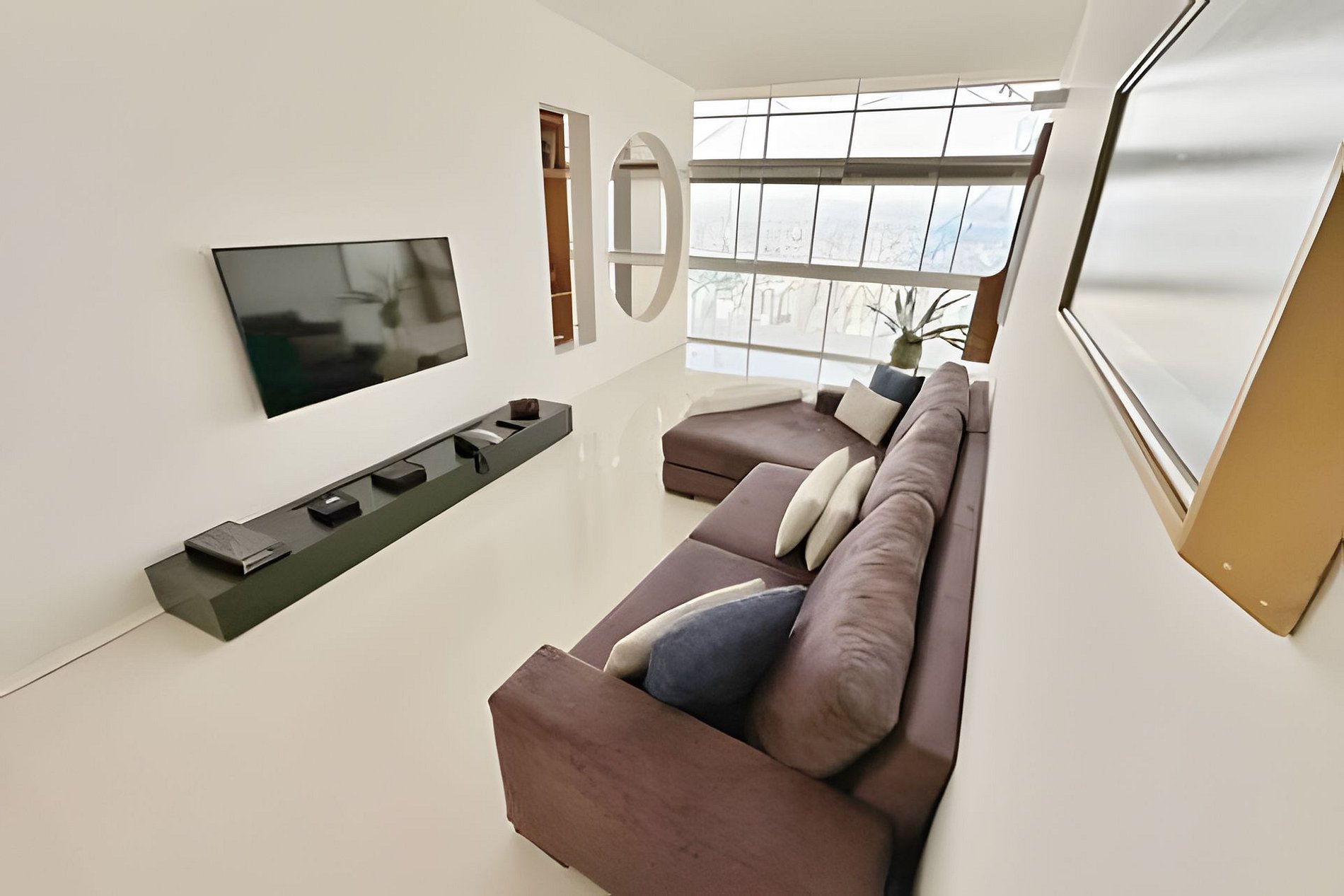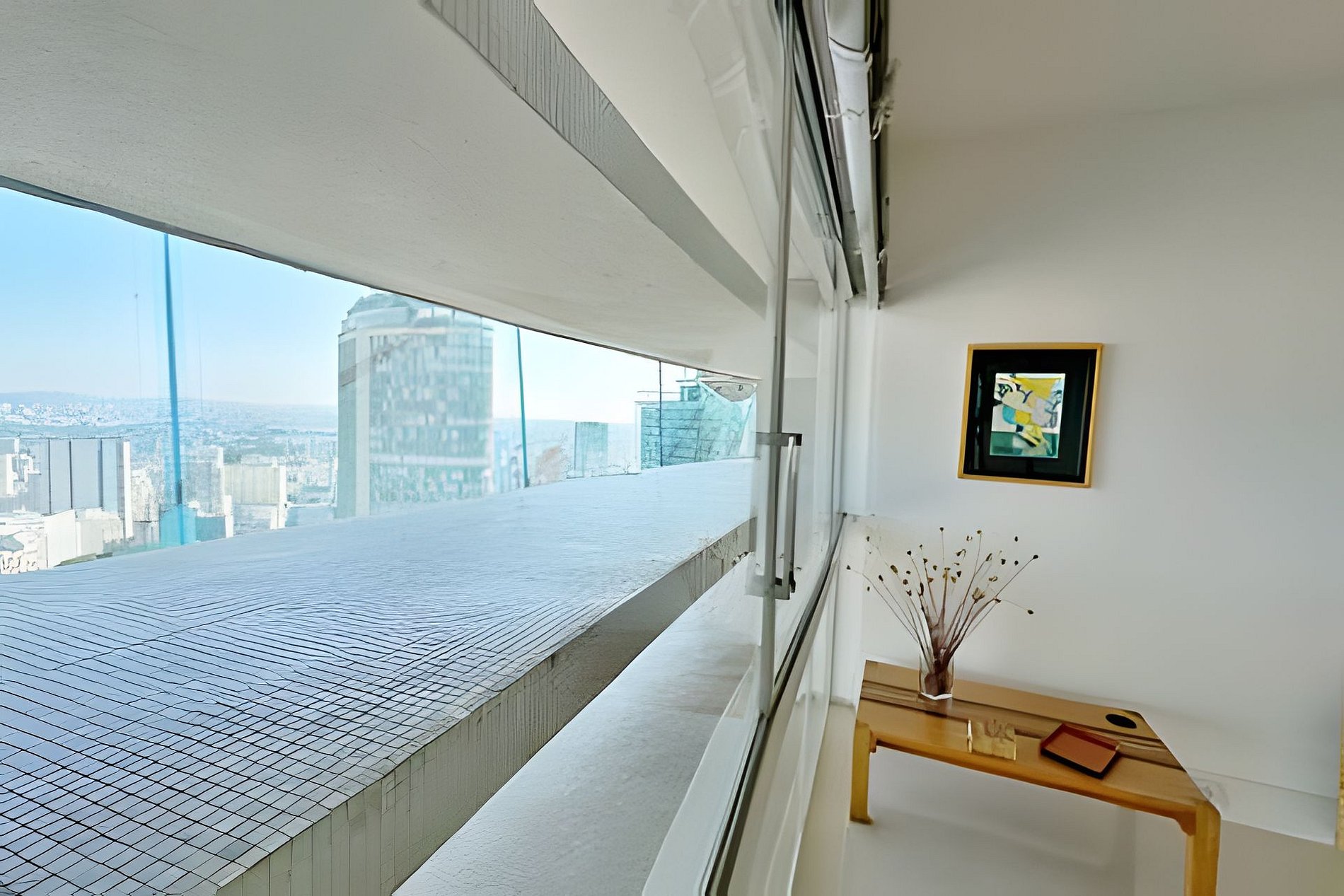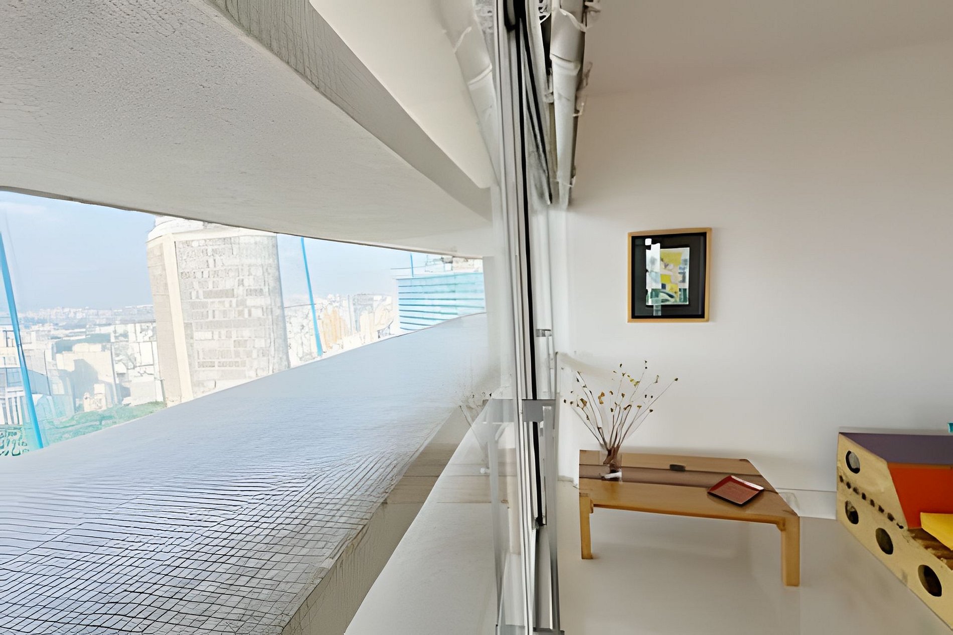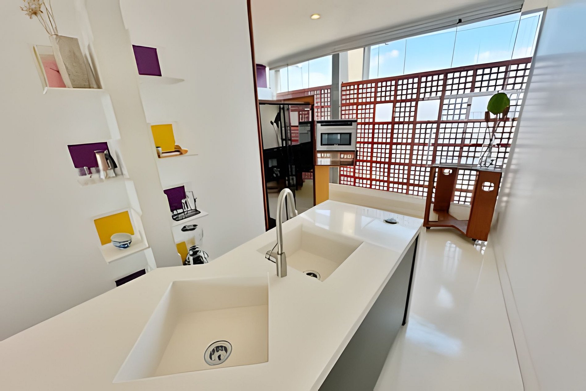 Este projeto do arquiteto alemão Walter Faigle, aluno da lendária Ulm Design School na década de 50, e que foi amigo pessoal dos proprietários, traduz para o ambiente do Copan elementos de sua genialidade. O apartamento, que está no último andar do edifício, traz o piso em revestimento monolítico branco, prolongando o horizonte da cidade para dentro de seus 180 m2. A maior planta do Edifício Copan, que foi redesenhada para dois espaçosos dormitórios e uma grande área de convívio.