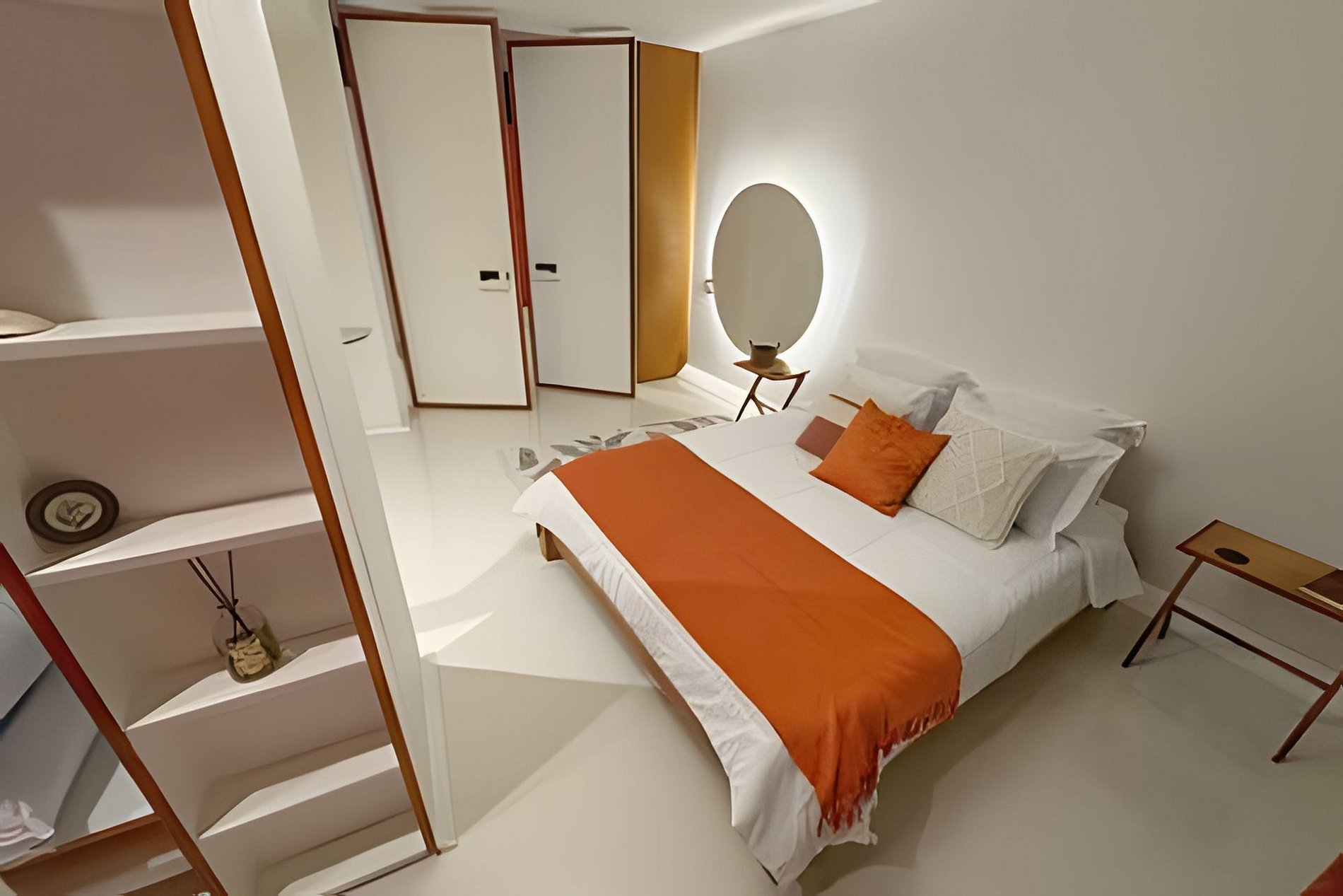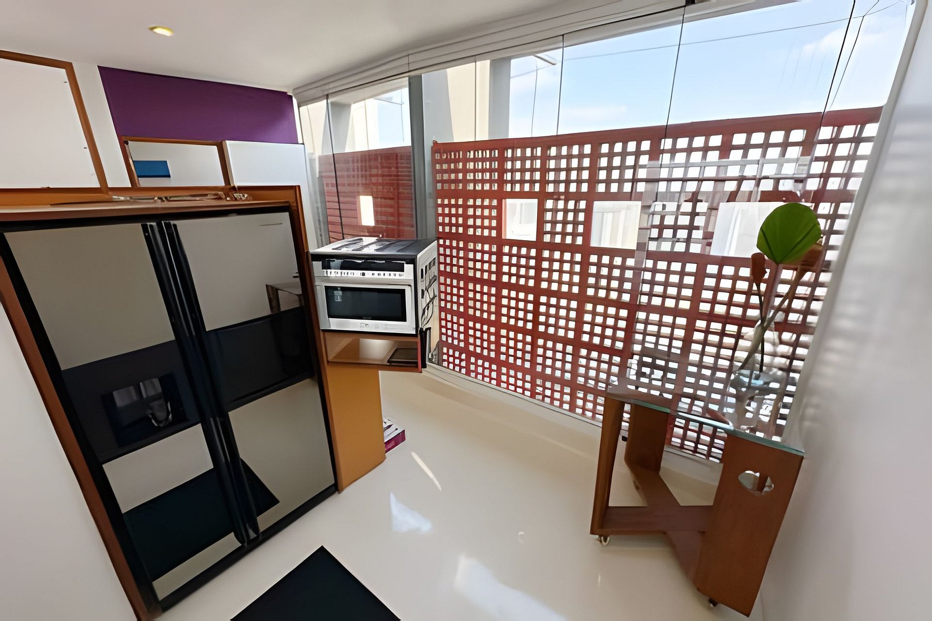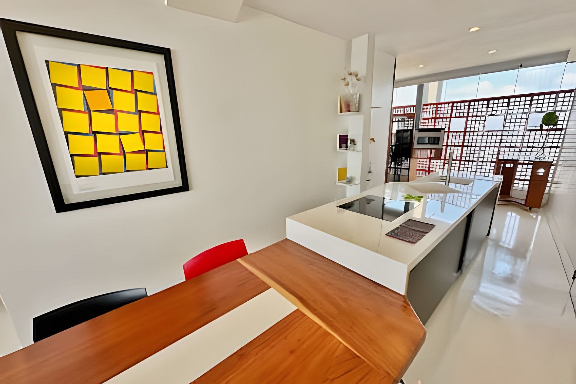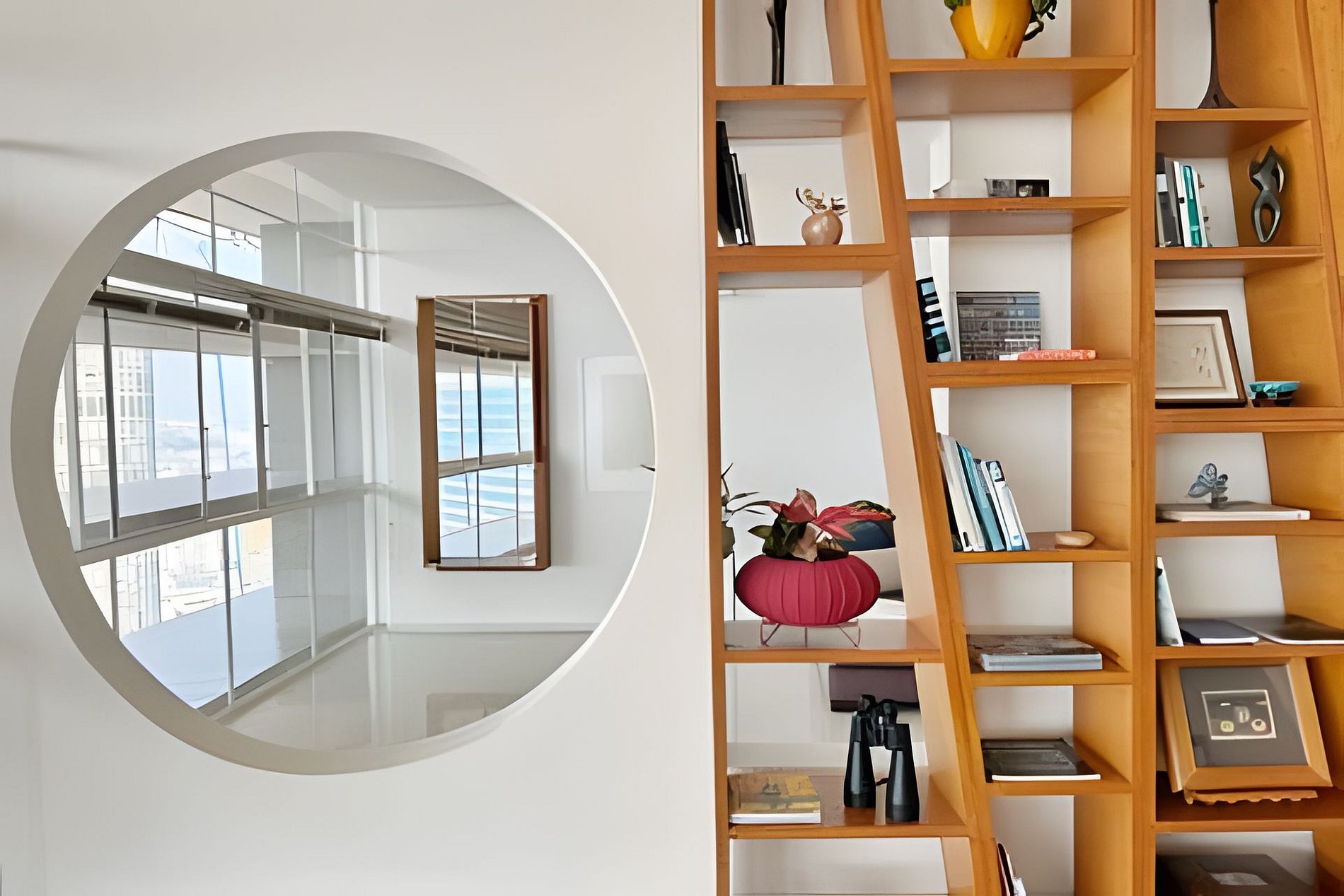 Este projeto do arquiteto alemão Walter Faigle, aluno da lendária Ulm Design School na década de 50, e que foi amigo pessoal dos proprietários, traduz para o ambiente do Copan elementos de sua genialidade. O apartamento, que está no último andar do edifício, traz o piso em revestimento monolítico branco, prolongando o horizonte da cidade para dentro de seus 180 m2. A maior planta do Edifício Copan, que foi redesenhada para dois espaçosos dormitórios e uma grande área de convívio.