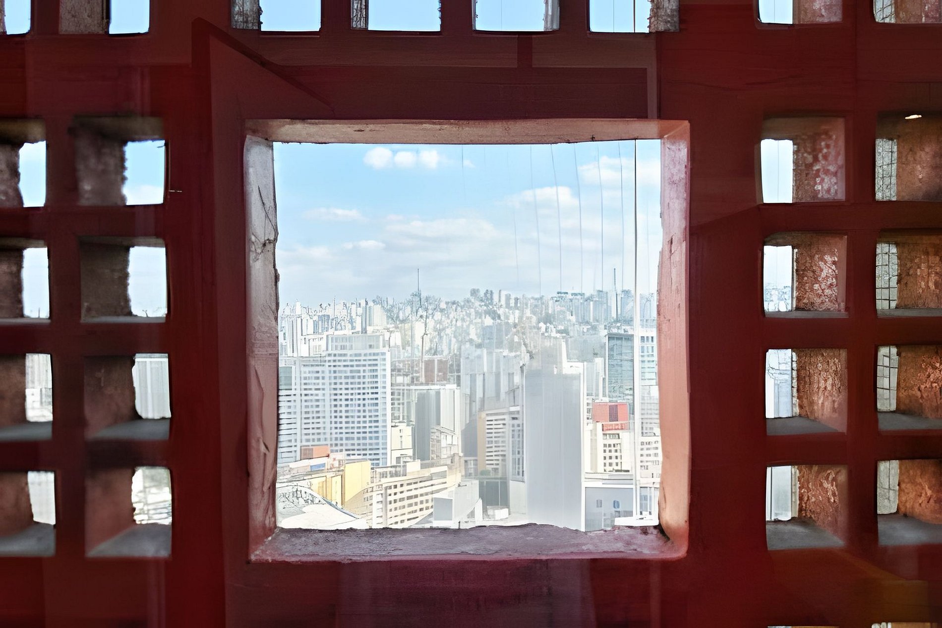 Presença de um véu transparente na frente da janela;