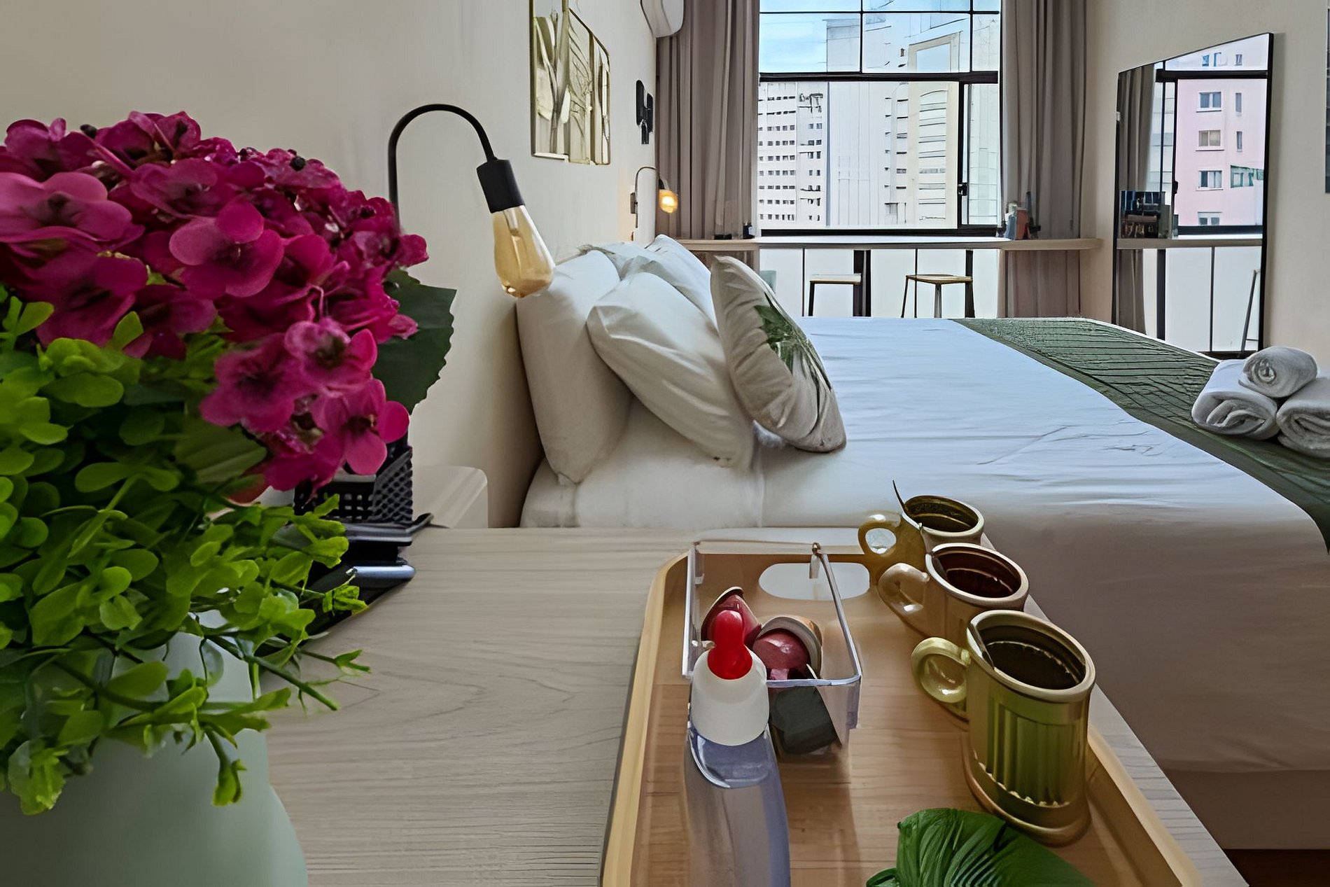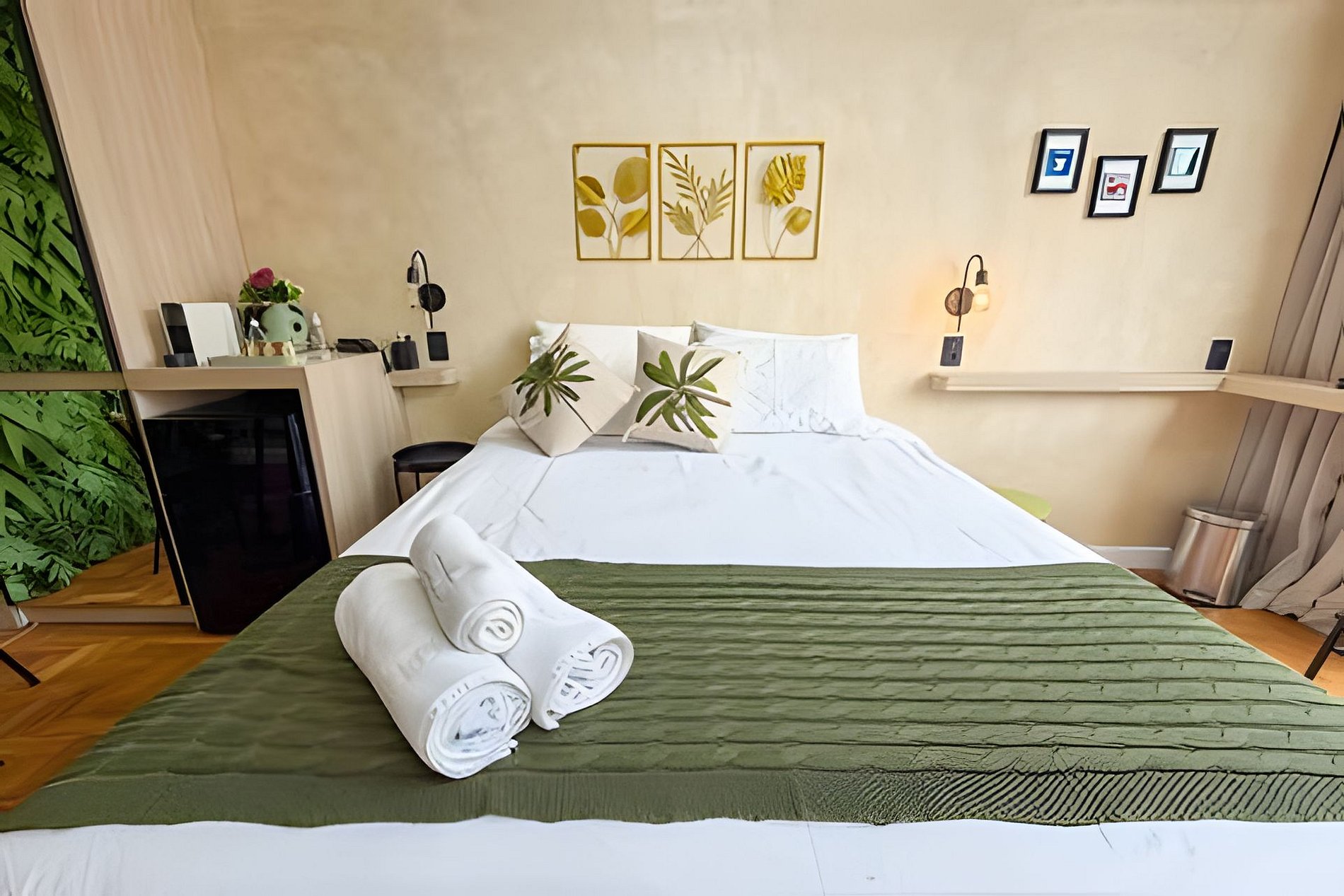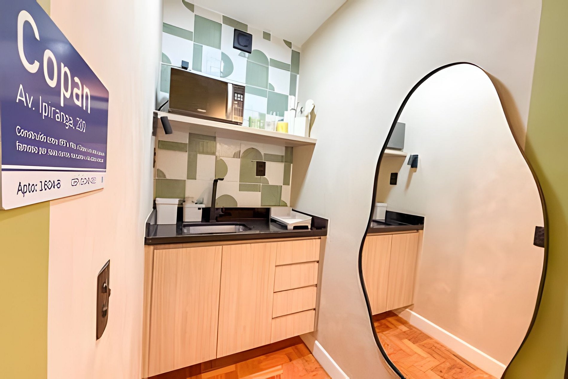 Estúdio moderno no 16º andar, perfeito para quem busca conforto e praticidade no coração da cidade. Conta com cama Queen aconchegante, ar-condicionado para os dias quentes, cafeteira nespresso para começar bem as manhãs e um imenso espelho de corpo inteiro, ideal para se arrumar com estilo. A cozinha é totalmente equipada, permitindo preparar refeições com facilidade. Ideal para viagens a trabalho ou lazer, com tudo que você precisa para uma estadia impecável.