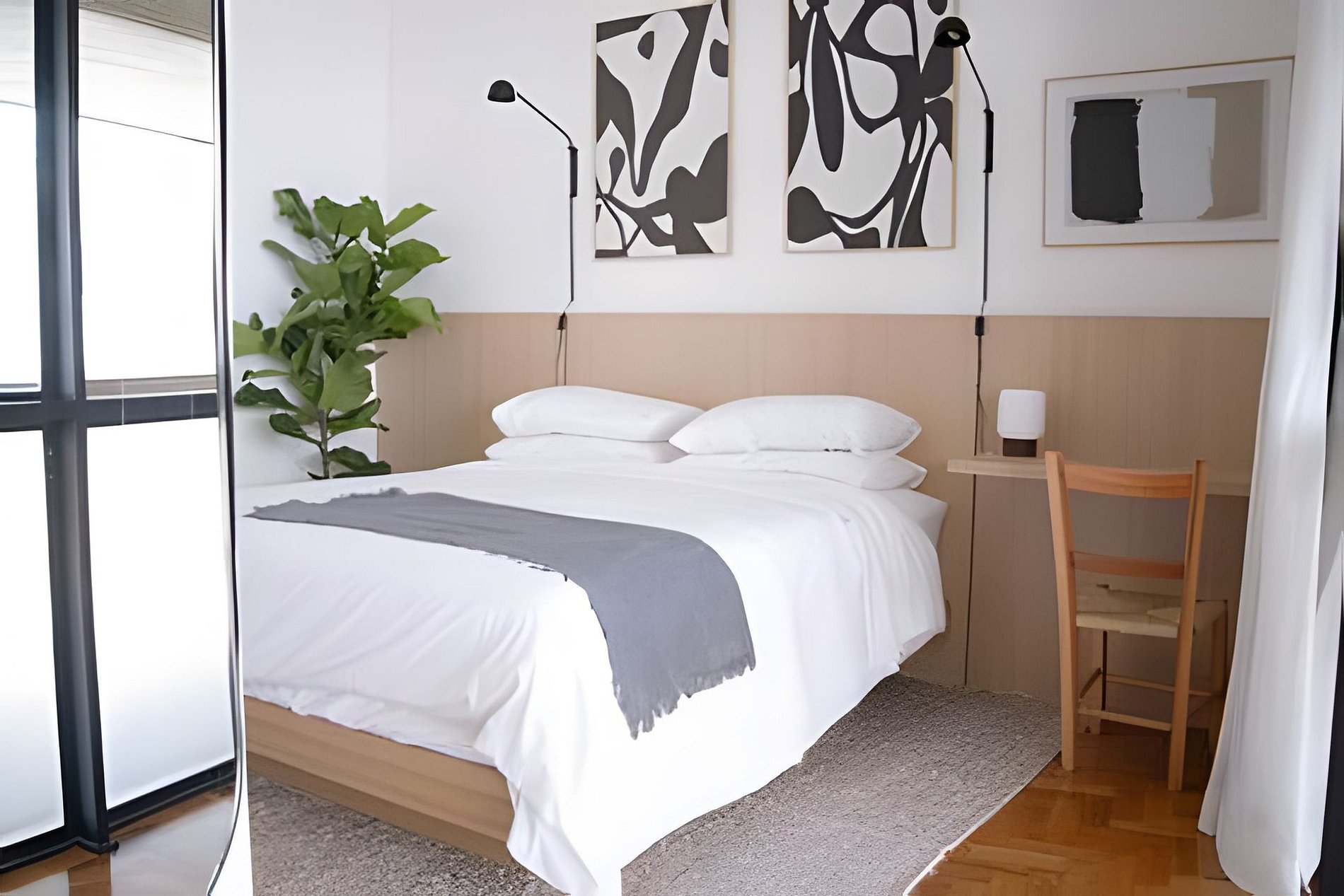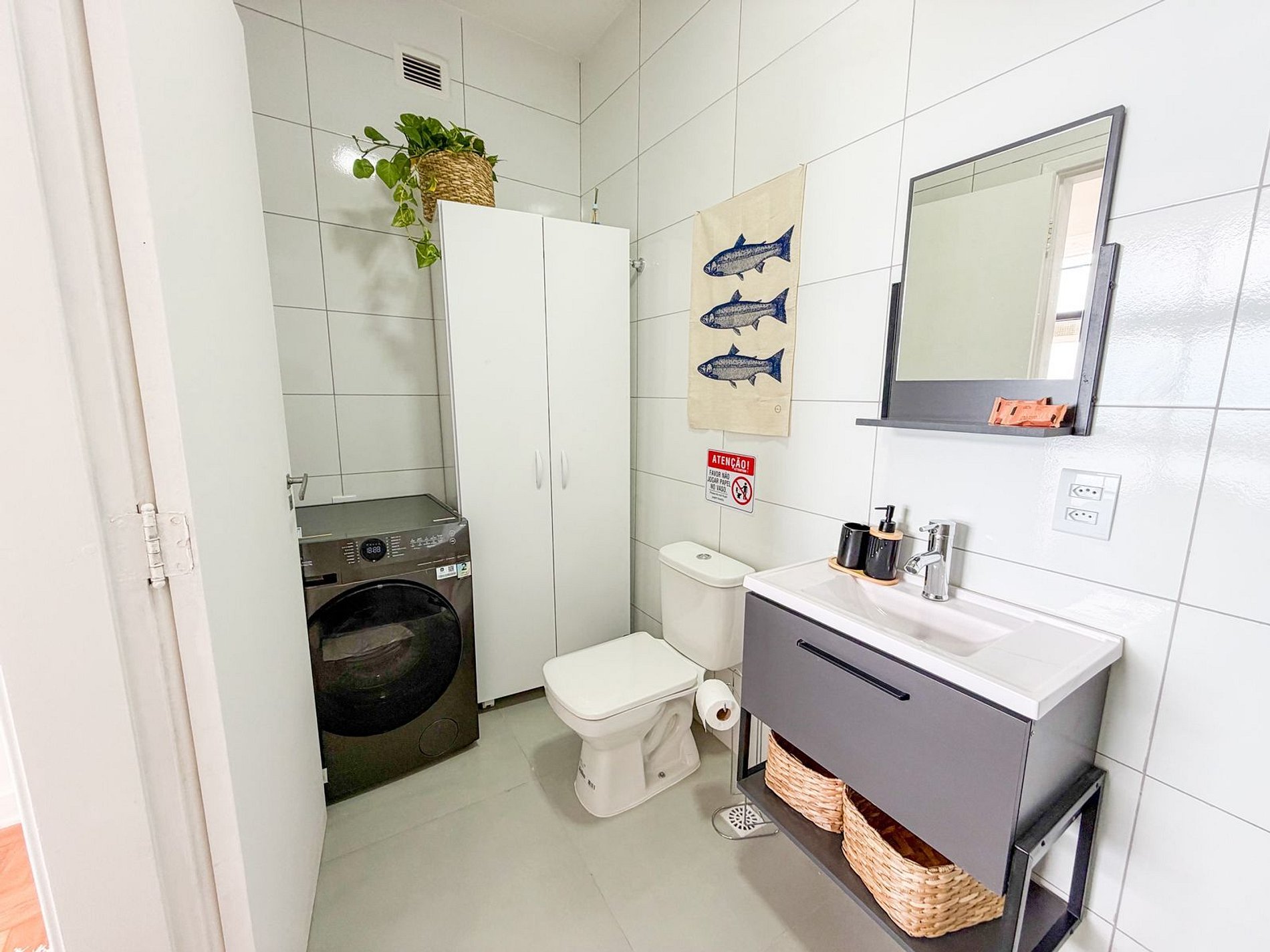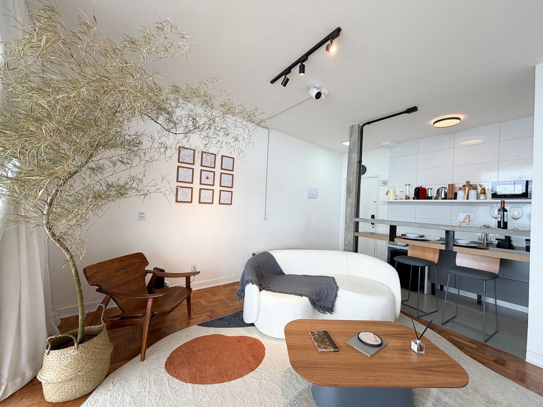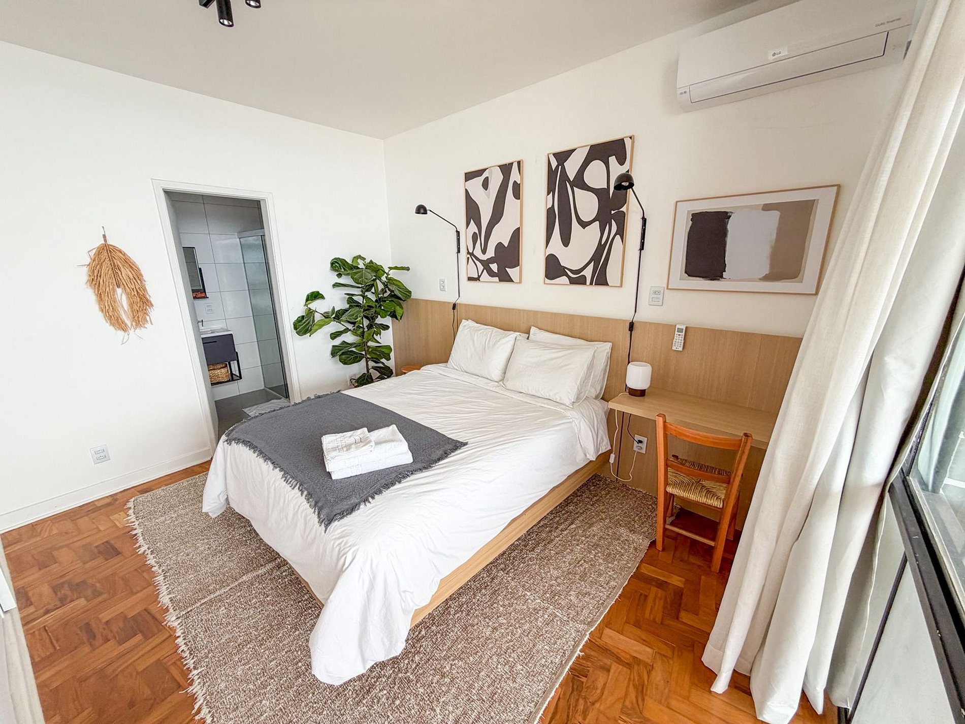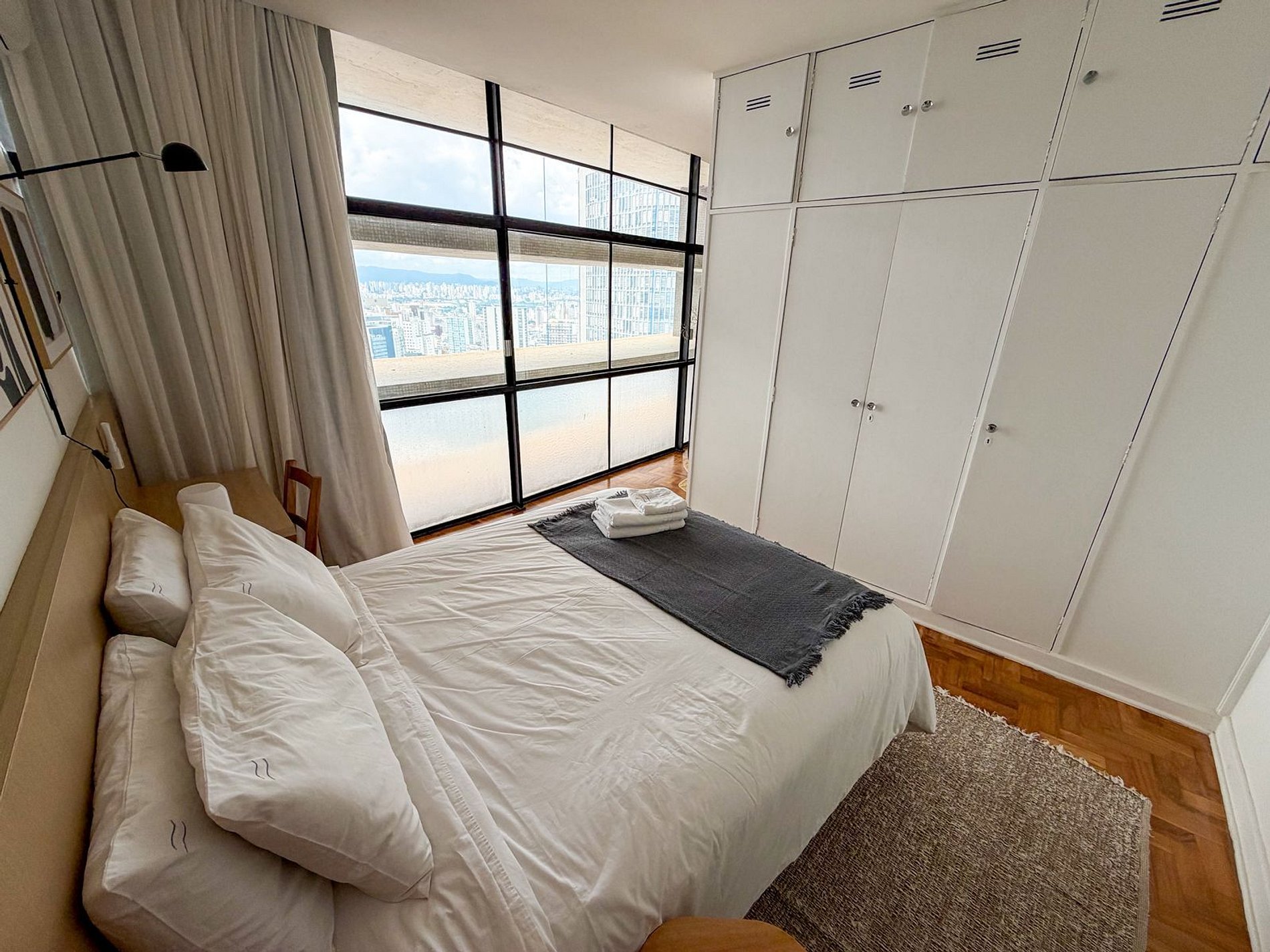 Hospede-se no alto do Copan, no 30º andar, em um apartamento que une conforto, praticidade e personalidade. O espaço tem ar-condicionado, máquina de lavar e cama queen size com colchão Simmons, ideal para descansar com qualidade após um dia em São Paulo. Com projeto da arquiteta Andressa Guerra, o apê oferece uma experiência acolhedora em um dos edifícios mais emblemáticos da cidade, com layout funcional e decoração cheia de charme, perfeito para estadias curtas ou longas.