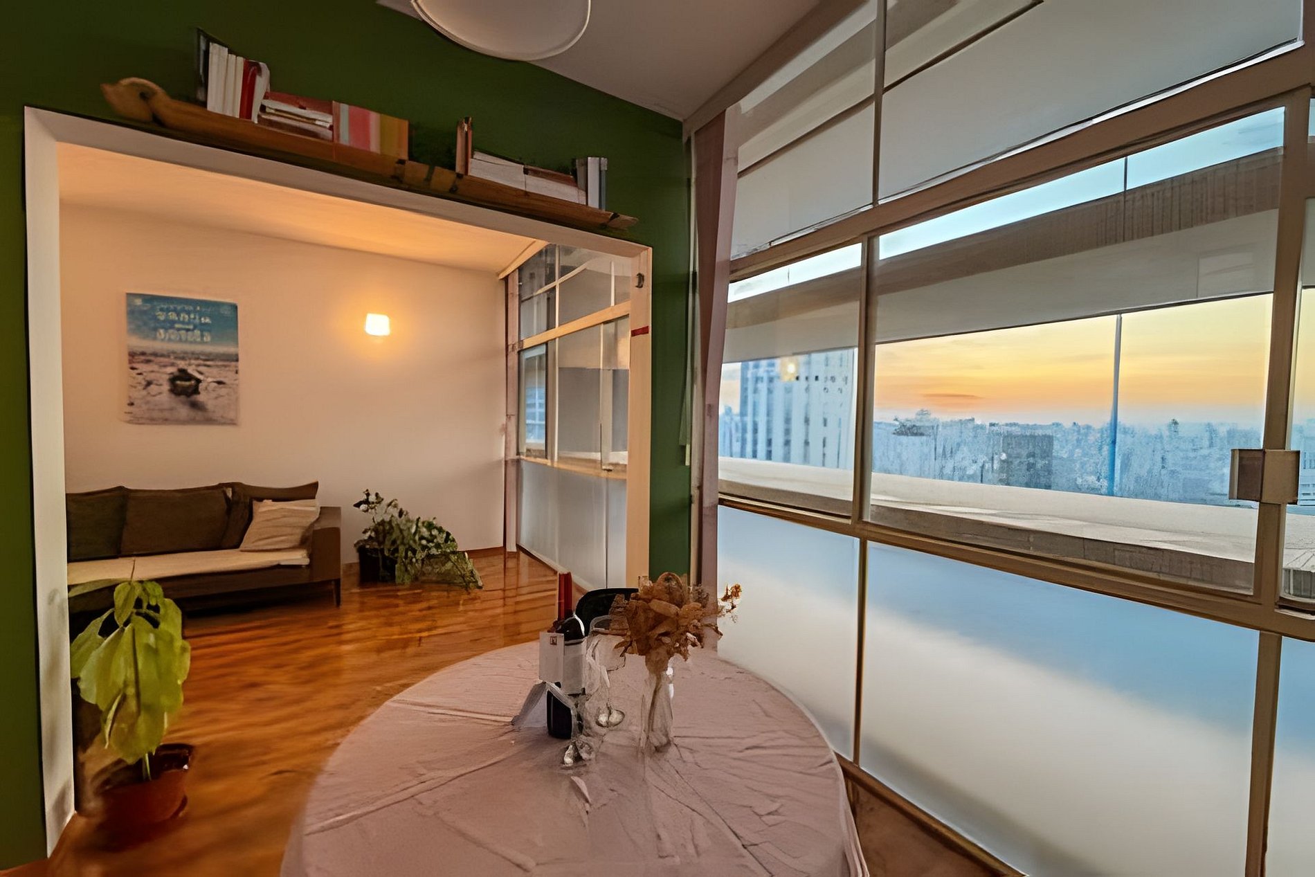 Apartamento no icônico Edifício Copan, no 24° andar do Bloco A, com uma vista simplesmente incrível do pôr do sol — daqueles que fazem você parar tudo pra assistir. O espaço é amplo e bem distribuído, com sala confortável, sala de jantar integrada e um home office ideal para quem precisa trabalhar com estilo. A cozinha é completa e equipada para o dia a dia ou estadias mais longas. Perfeito para viver São Paulo com charme e praticidade.