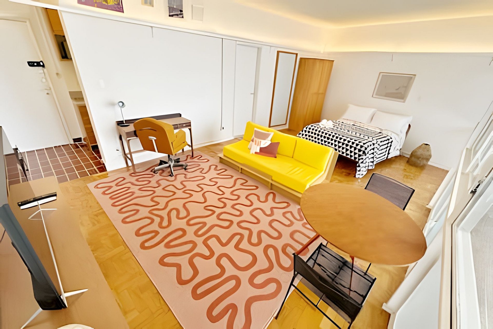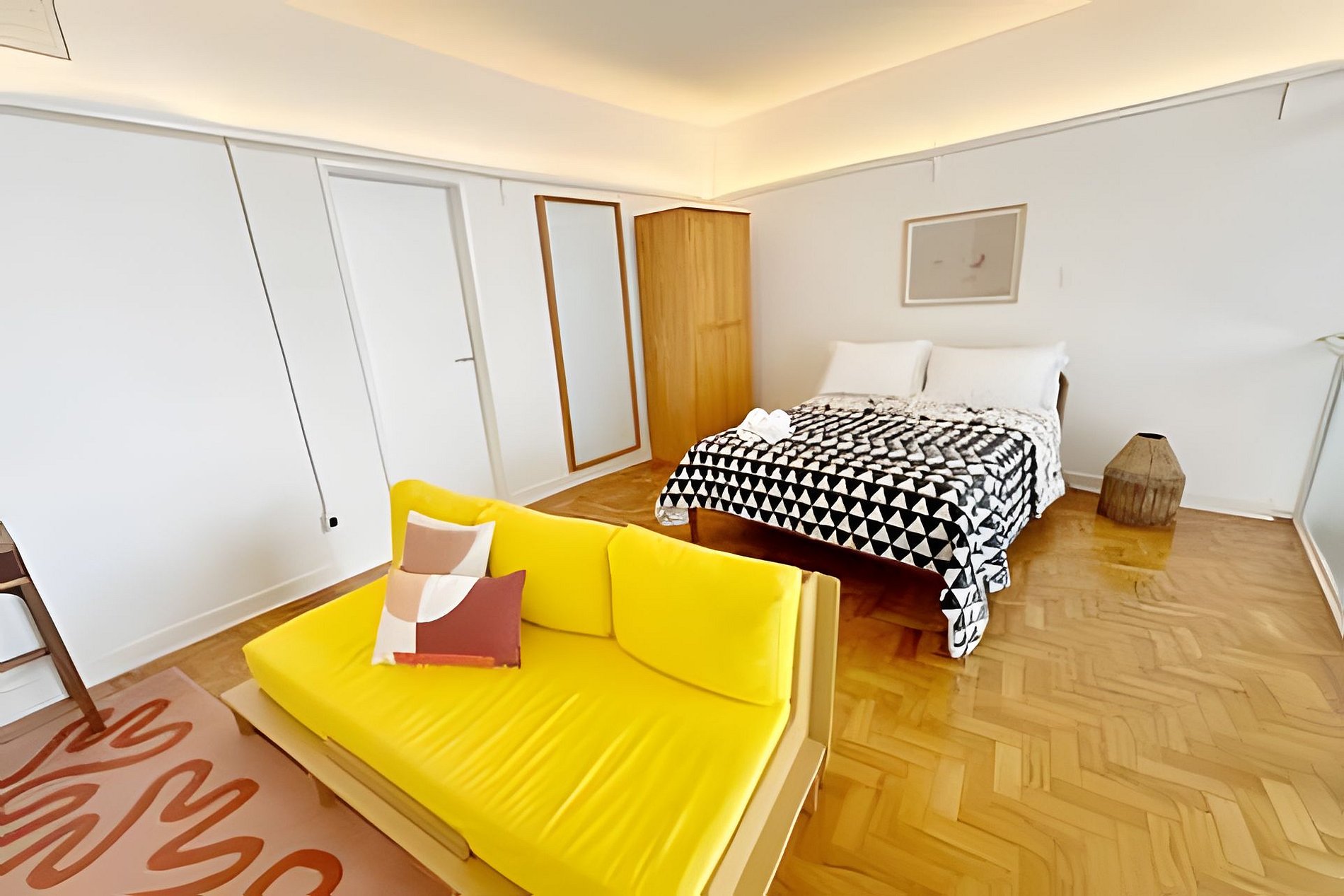 Hospede-se no Edifício Copan, um dos mais importantes prédios de São Paulo, e tenha acesso fácil a dezenas de excelentes restaurantes, bares, museus, teatros e shopping centers. Este apartamento é sua base ideal para explorar o Centro de São Paulo com estilo. Projetado por um casal de artistas plásticos, o studio é repleto de obras de arte e tem um design realmente surpreendente. Venha conhecer e se encantar com este apartamento.