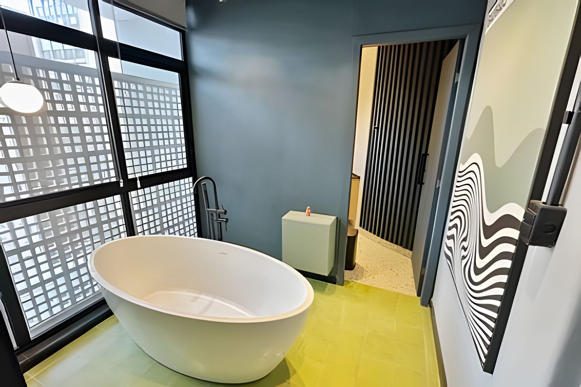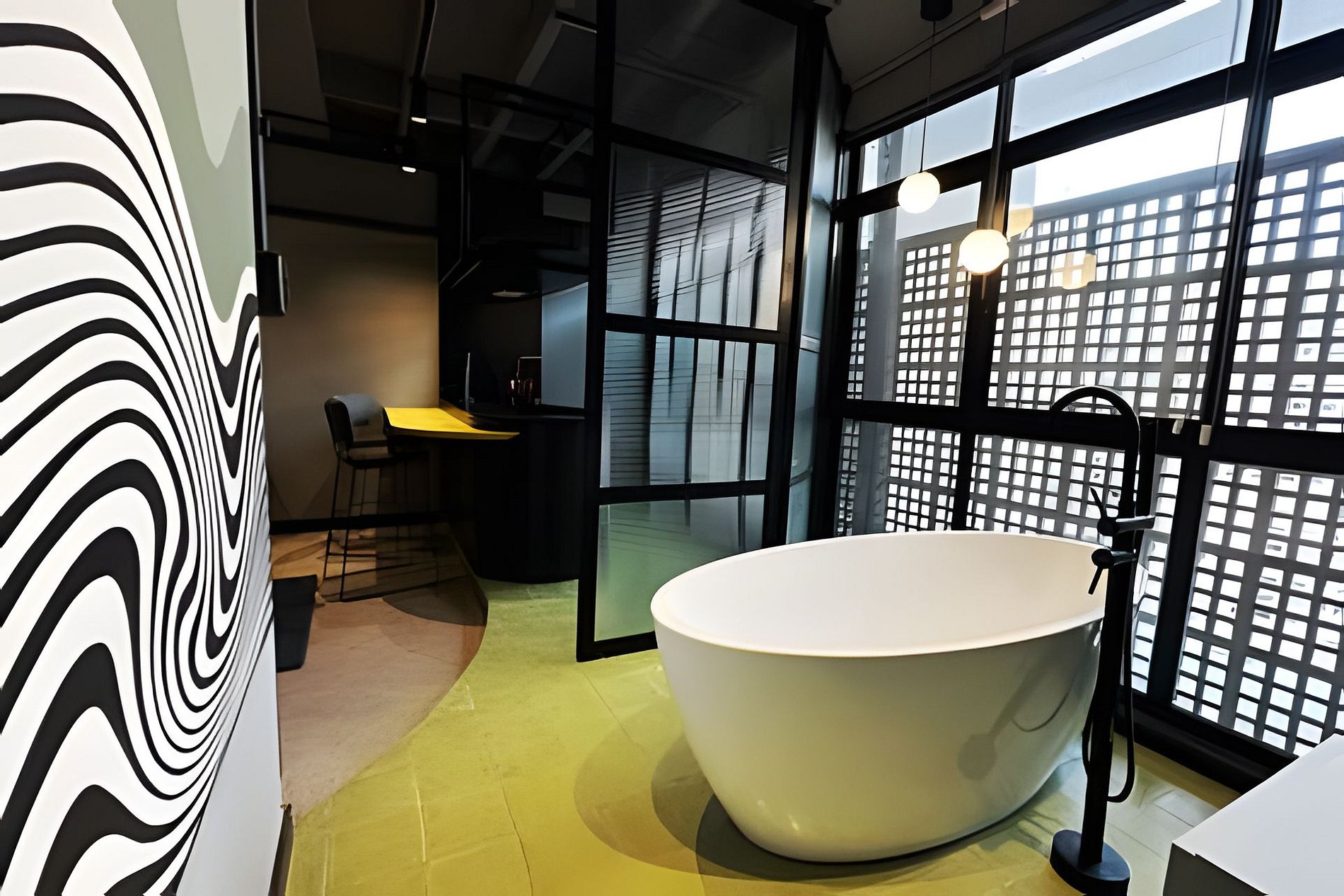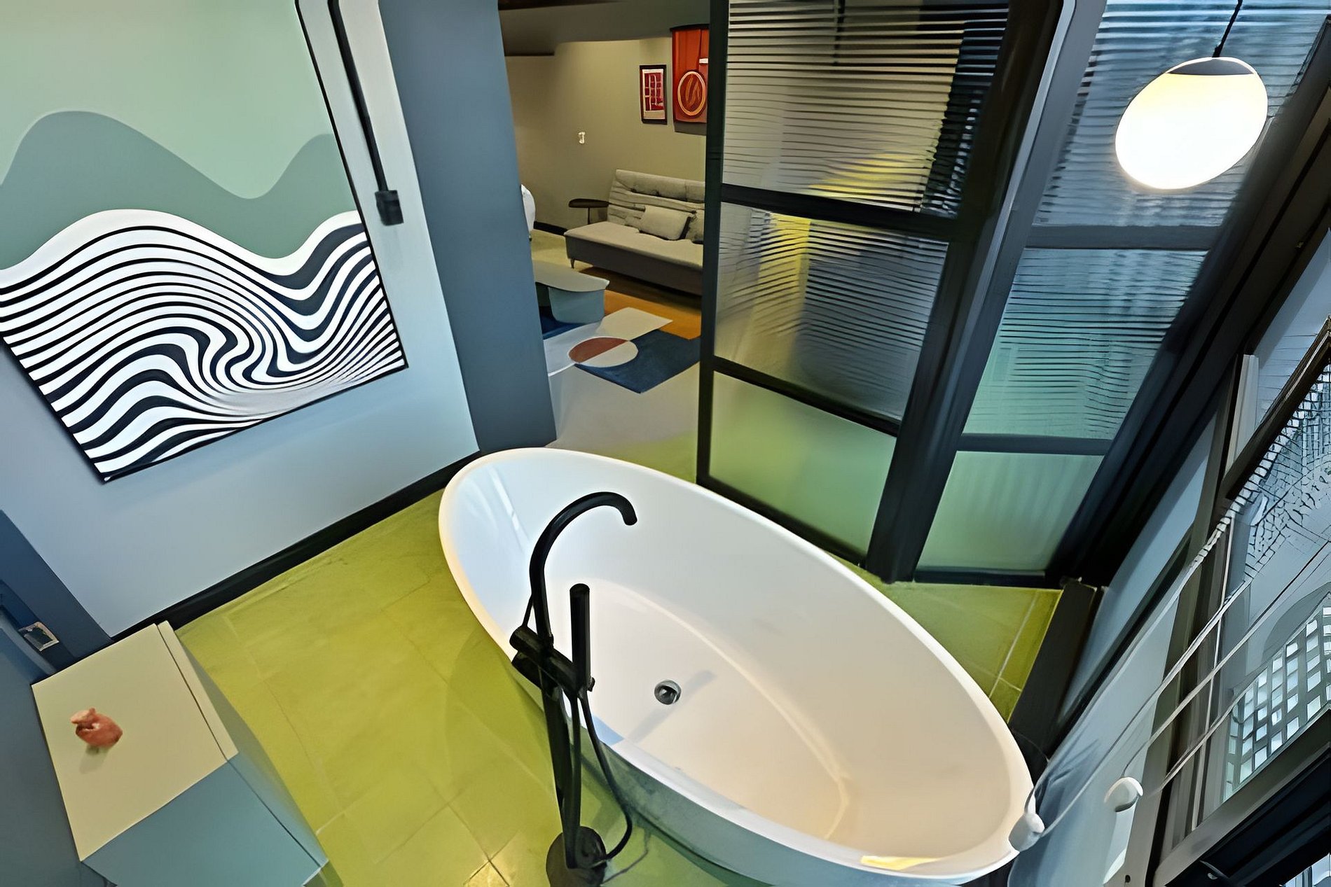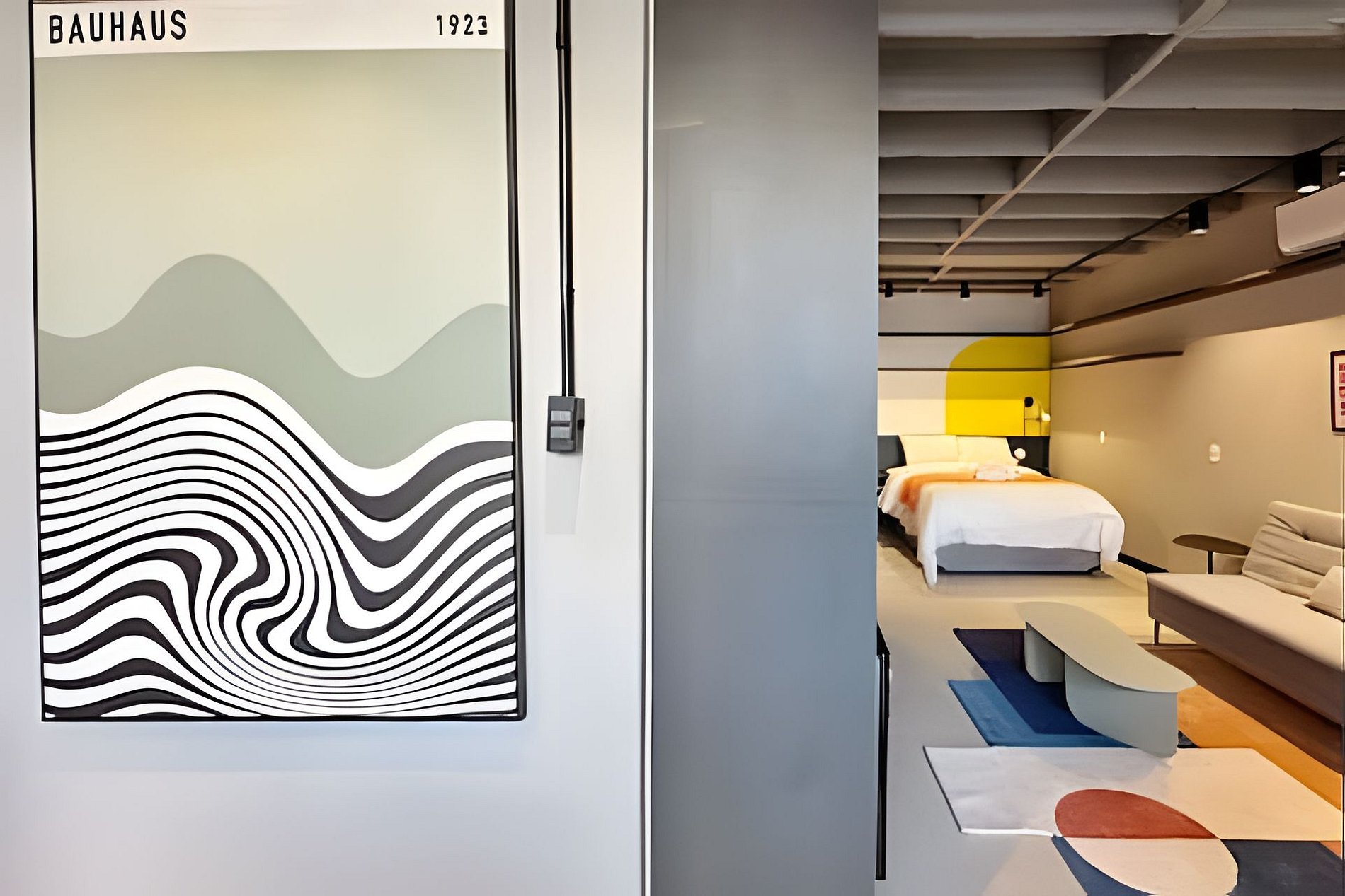"Entre Curvas e Cores" é uma celebração da arquitetura modernista brasileira, onde a sensualidade se encontra com a funcionalidade. Inspirada na obra de Lúcio Costa e na estética do Edifício Copan, esta suíte convida os hóspedes a explorar um espaço que é tanto um refúgio quanto uma experiência sensorial. Lúcio Costa foi o que trouxe uma releitura do Bauhaus na arquitetura com formas e cores, trouxemos o BauHaus com essa temática mas dar vida a suíte.